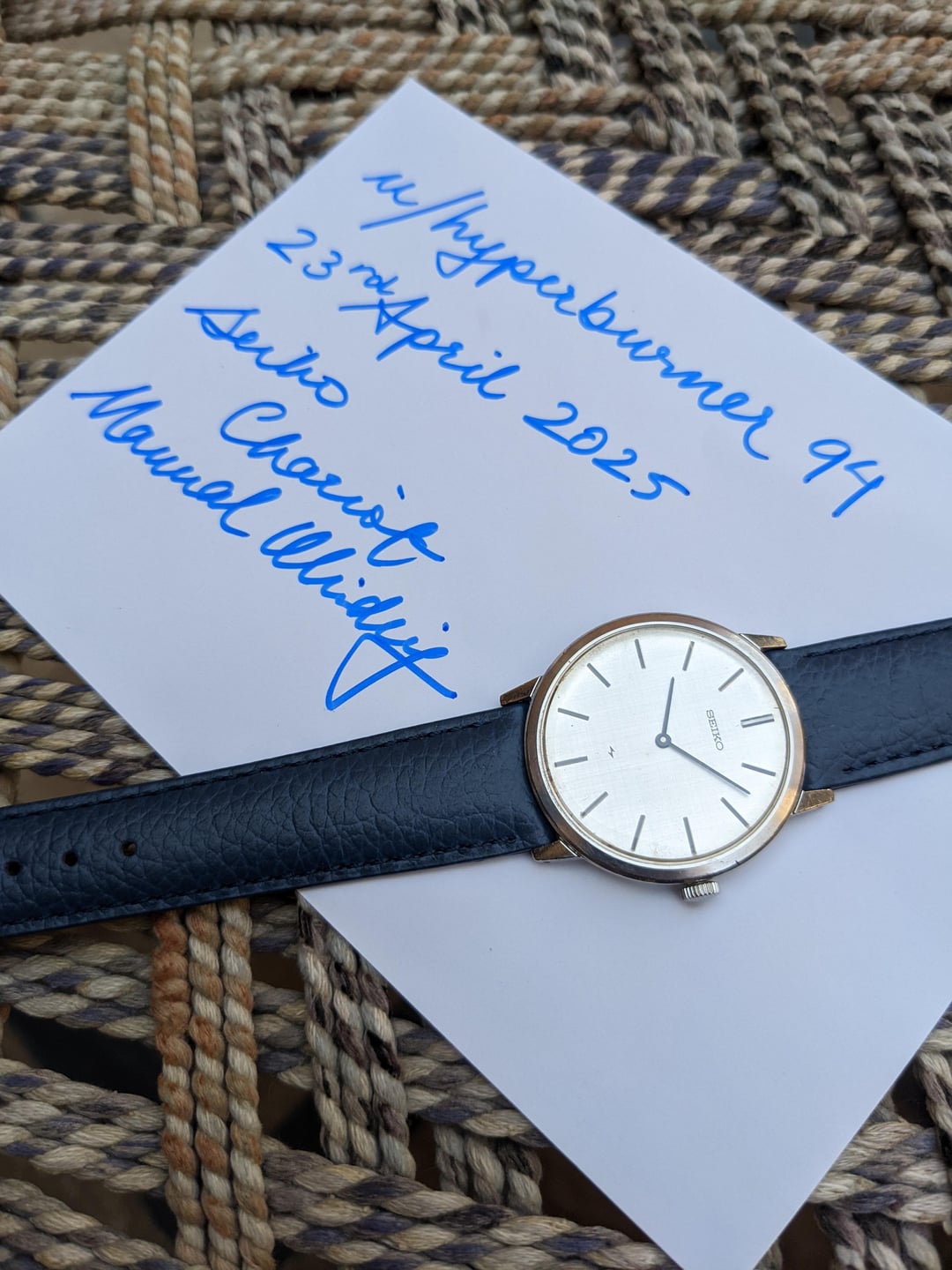 il y a 9 mois | [WTS] Seiko Chariot in Linen Dial Manual Winding ⚙️ from November 1973 🗓️ for sale 💵 $199 (Shipped) 🚢 Video Attached 📽️ | $199 | |