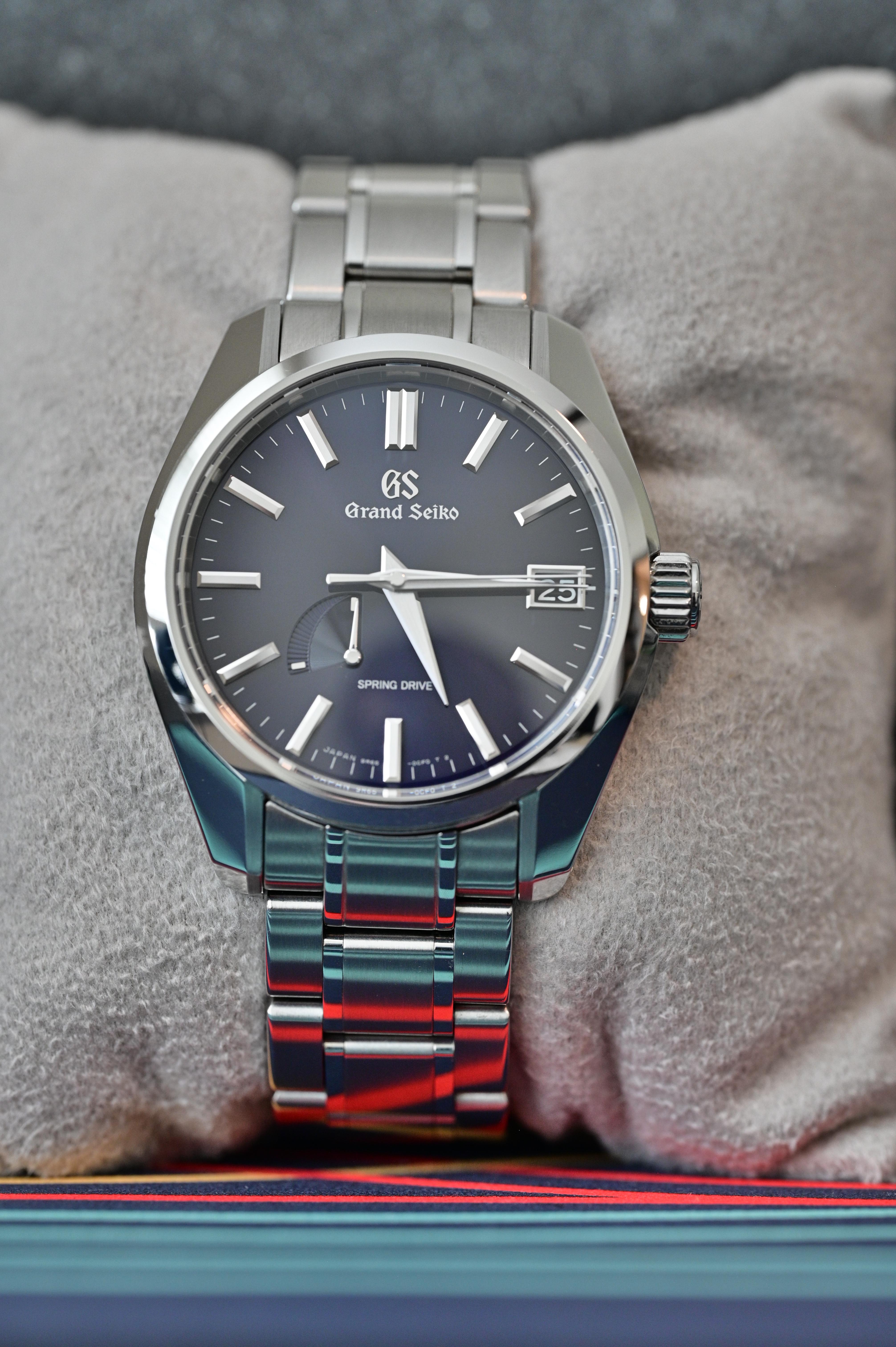 Up for sale today is my SBGA375 with a deep, deep blue dial. The dial and indices on this watch are fantastic. It has a very deep blue color that is almost black in some lighting but it's very dynamic and it reacts with the light very well. There is never a dull moment when I look at the dial and indices including the excellent handset. I got this watch from Exquisite in Nov'2024 and it has 4.5 year warranty left Unfortunately, I slowly started to dislike the high polished case and just the general bling of this watch. Watch is in very good condition but it's a 44GS case, so there are micro scratches. There is a small scratch at 12'o clock and back of the lugs are scratched. Bracelet has scratches because I used it one day at work on my metal laptop. No trades please. I am selling everything in hopes of just owning one pilot watch and one beater watch More info: [https://www.grand-seiko.com/us-en/collections/sbga375g](https://www.grand-seiko.com/us-en/collections/sbga375g) Timestamp and Album: [https://imgur.com/a/sbga375-E35yWgZ](https://imgur.com/a/sbga375-E35yWgZ) Price: 3500 including shipping within the US Payment: Paypal (Buyer pays the fee) Shipping: Insured USPS/UPS/FEDEX within CONUS I am open to FaceTime calls to show the watch