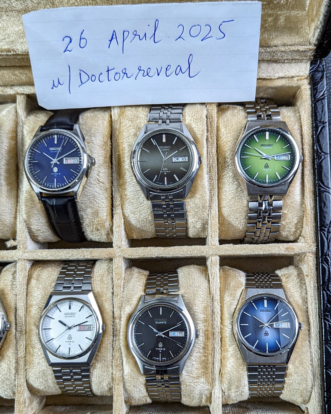 Timestamp : https://imgur.com/gallery/tc2N5DY Hey watch exchange family ! I’m selling some of my beautiful watches today! Don’t miss out …. grab yours before they’re gone! 1) Seiko Type II - Green watermelon 🍉 dial kanji day/date calendar - $199 2) Seiko Type II Stunning Blue dial 💙 - kanji day/date calendar - $189 3) Seiko LM Coffee Cappuccino dial 25 jewels - 5606 movement Automatic - $289 4) Seiko Type-ll Quartz Diamond Case & Frosted Grainy Dial with Kanji Day Date - $159 🙌🏻 PM me for more photos or a video Shipping: $30 via UPS (5–7 business days) Payment: PayPal F&F or G&S (+4.4% paid by buyer)