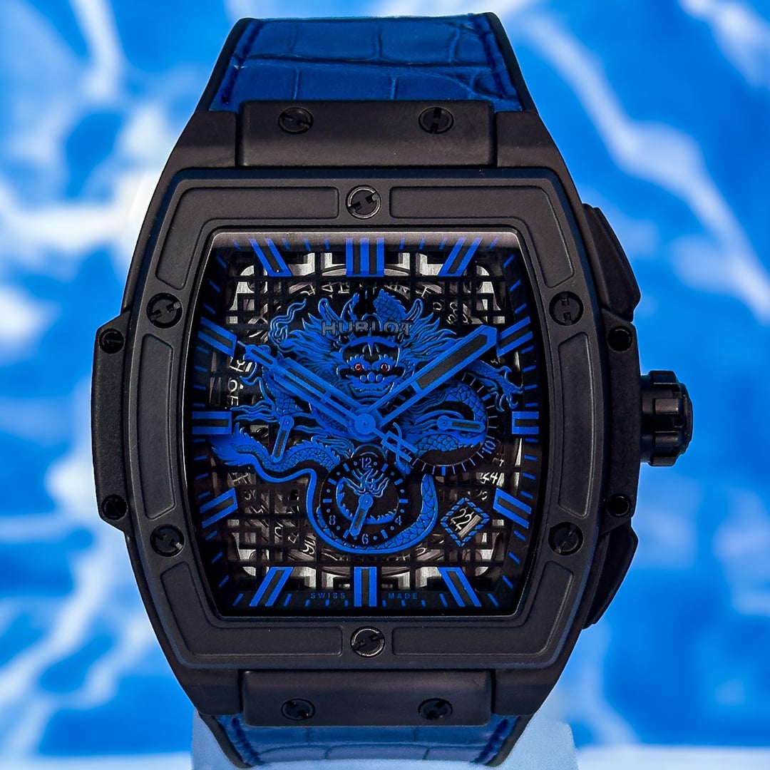 **\[WTS\] ULTRA RARE Hublot Spirit of Big Bang “Bruce Lee – Be Like Water” 601.CI.1190.LR.BLF16 – Full Set – 1 of 100 Worldwide** **Price:** $22,897 shipped (CONUS) **Condition:** Excellent pre-owned Up for sale is a highly sought-after collector’s piece — the **HB Spirit of Big Bang “Bruce Lee – Be Like Water”**, reference **601.CI.1190.LR.BLF16**. Limited to just **100 pieces worldwide**, this model pays tribute to Bruce Lee, featuring a skeletonized dial with a blue dragon motif (ruby-set eyes) inspired by the carving on Bruce Lee’s personal desk. This model runs on the **HB HUB4700 automatic chronograph**, based on the legendary **Zenith El Primero**. The case is microblasted black ceramic, paired with a blue alligator strap over black rubber and a black PVD deployant clasp. Comes complete as a full set with all accessories listed below. **What’s Included:** ✅ Inner and outer HB boxes ✅ Warranty card ✅ Commemorative Bruce Lee book ✅ Extra strap ✅ All booklets and inserts **Specs:** • Case Size: 45mm • Case Material: Microblasted black ceramic • Dial: Skeleton w/ blue dragon + ruby eyes • Crystal: Sapphire (front and back) • Movement: HUB4700 (El Primero base), 36,600 vph, 50-hr power reserve • Functions: Chronograph, date, small seconds • Water Resistance: 100m • Strap: Blue alligator leather over black rubber • Clasp: Black PVD deployant **Shipping:** 🚚 FedEx Priority Overnight (insured + signature required) 🌍 International available at buyer’s expense **Payment:** 💵 Wire Preferred. Zelle & Venmo with vetting, CC accepted with extreme vetting and 3.5% fee Other vetted methods may be considered for long-standing members This is a **rarely seen, highly collectible** model and a grail for HB fans or Bruce Lee collectors alike. Only 100 were produced, and full sets are nearly impossible to find. Feel free to DM with questions or to request more photos/video.
