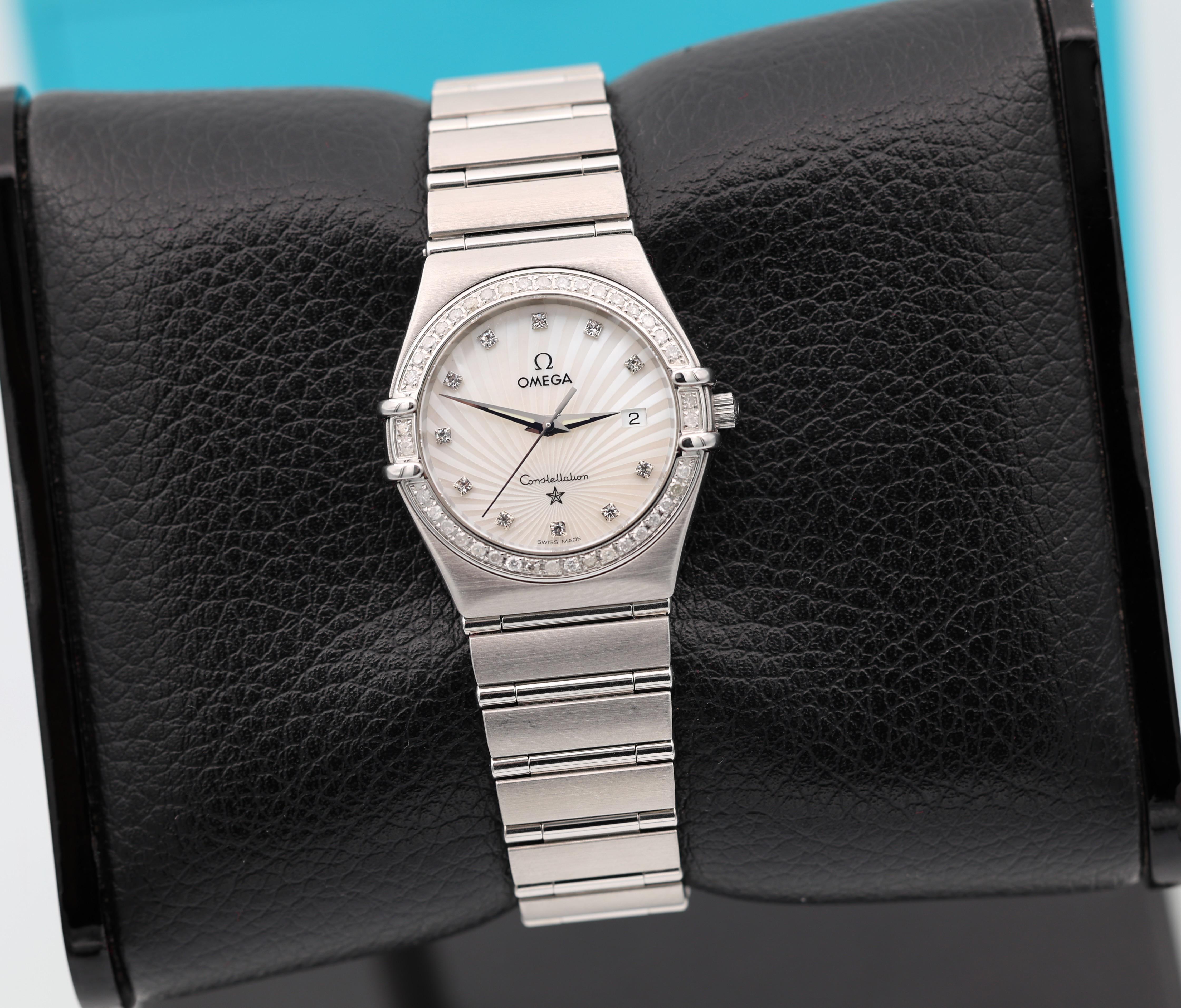 Hello All - I am putting for sale - Omega Constellation. Ladies Factory Diamonds. Mother of pearl dial. Very gorgeous. Watch, box, manual. Reference: 111.15.26.60.55.001 📷 More Pics: https://www.dropbox.com/scl/fo/k5q3ozhwal04i7slyq4ee/AJRtvPU0DUdn4mCTS2F-9w0?rlkey=xpn2jqx2w0t7xzsthvfs9qn8w&st=ljyy9x00&dl=0 📆 Timestamp: https://www.dropbox.com/scl/fi/k5gg50wolt0wvlyg08snq/Photo-May-13-2025-4-08-43-PM.jpg?rlkey=day4ak0mndpnjyt8fr65m09sk&st=xo784821&dl=0 I am asking $1750 + shipping . Watch located in NJ USA. I am very comfortable doing a facetime to show the watch if needed. Please PM me for any questions that you may have. I am certain it will go to a good home. Thanks for looking. ** 🛡️Buy with Confidence!! 450+ references. ** ⭐️Checkout my profile for other amazing watches. ** 📦All packages are shipped Fedex with insurance. ** 🌎Shipping accepted globally.
