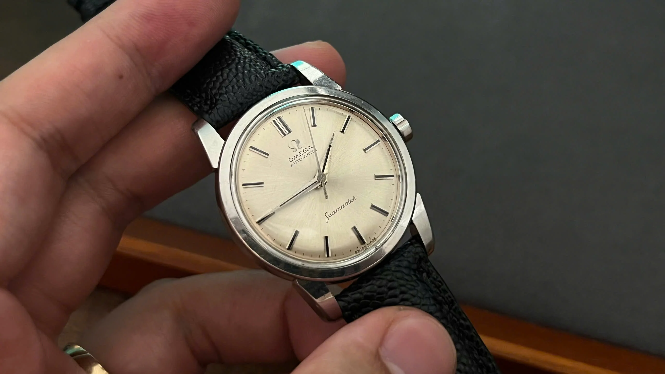 Up for sale is a lovely vintage Omega Seamaster from 1958, reference 2846, powered by the automatic Caliber 501. What makes this piece special is the large hippocampus logo on the caseback—Omega only used this version for a short time in 1958, so it’s much less common than the usual smaller logo.