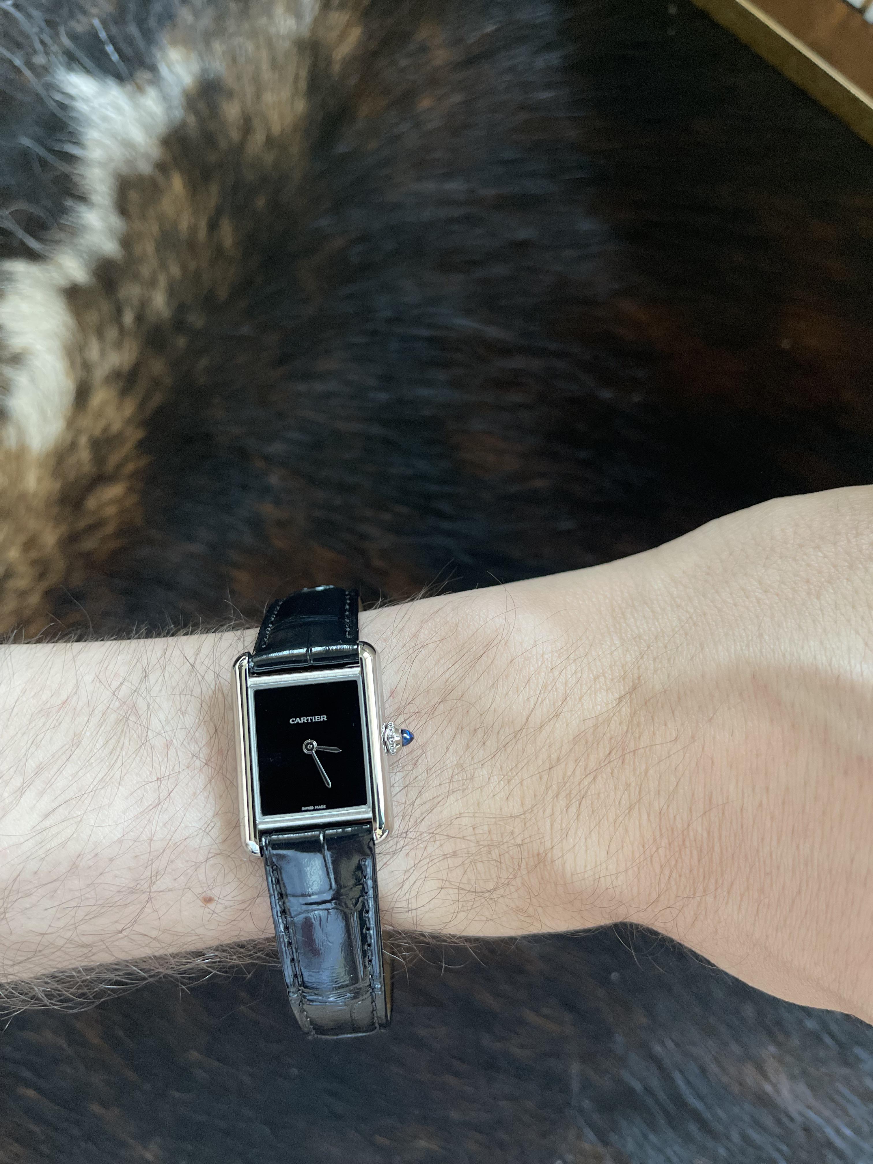 For sale is a Cartier Tank Must Black (Ref. WSTA0071) – a modern minimalist take on the iconic Tank. This is the large model with a striking black lacquer dial and no numerals, giving it a clean and timeless aesthetic. Details: * Condition: Brand new, unworn * Reference: WSTA0071 * Movement: Quartz * Case size: 29.5 mm x 22 mm (Small Model) * Dial: Black lacquer, no numerals * Strap: Original Cartier black leather strap * Includes: Full set – box, papers, booklets, tags * Warranty: Worldwide warranty with 5 years remaining from Cartier Price: $3,300 USD Shipping: Worldwide Payment: Wire or PayPal G & S. Gallery: [https://imgur.com/a/mYsZb7w](https://imgur.com/a/mYsZb7w) Stamp: [https://imgur.com/a/mp9GRfB](https://imgur.com/a/mp9GRfB) Instagram: LeWatch\_\_ Open to video calls or meeting face to face. For more details & pictures do not hesitate to reach out.