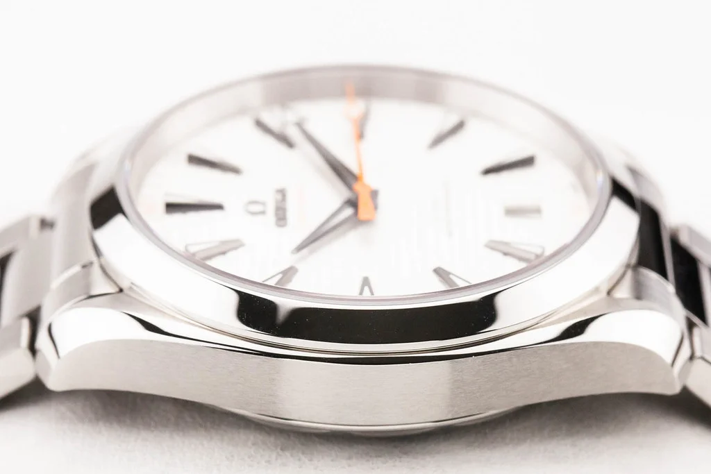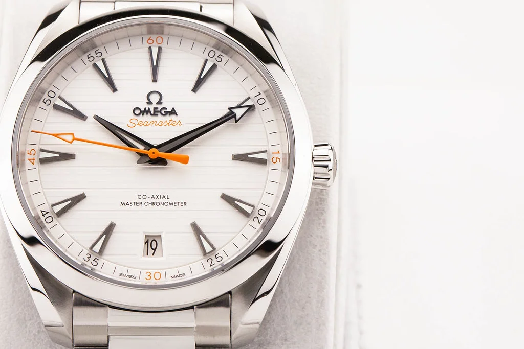 Up for sale is an excellent Omega Aqua Terra 8900 41mm with Silver Dial / Orange Accents on Bracelet, reference # 220.12.41.21.02.001. It comes with all boxes, papers, booklets and Omega Warranty Card dated December 2022.