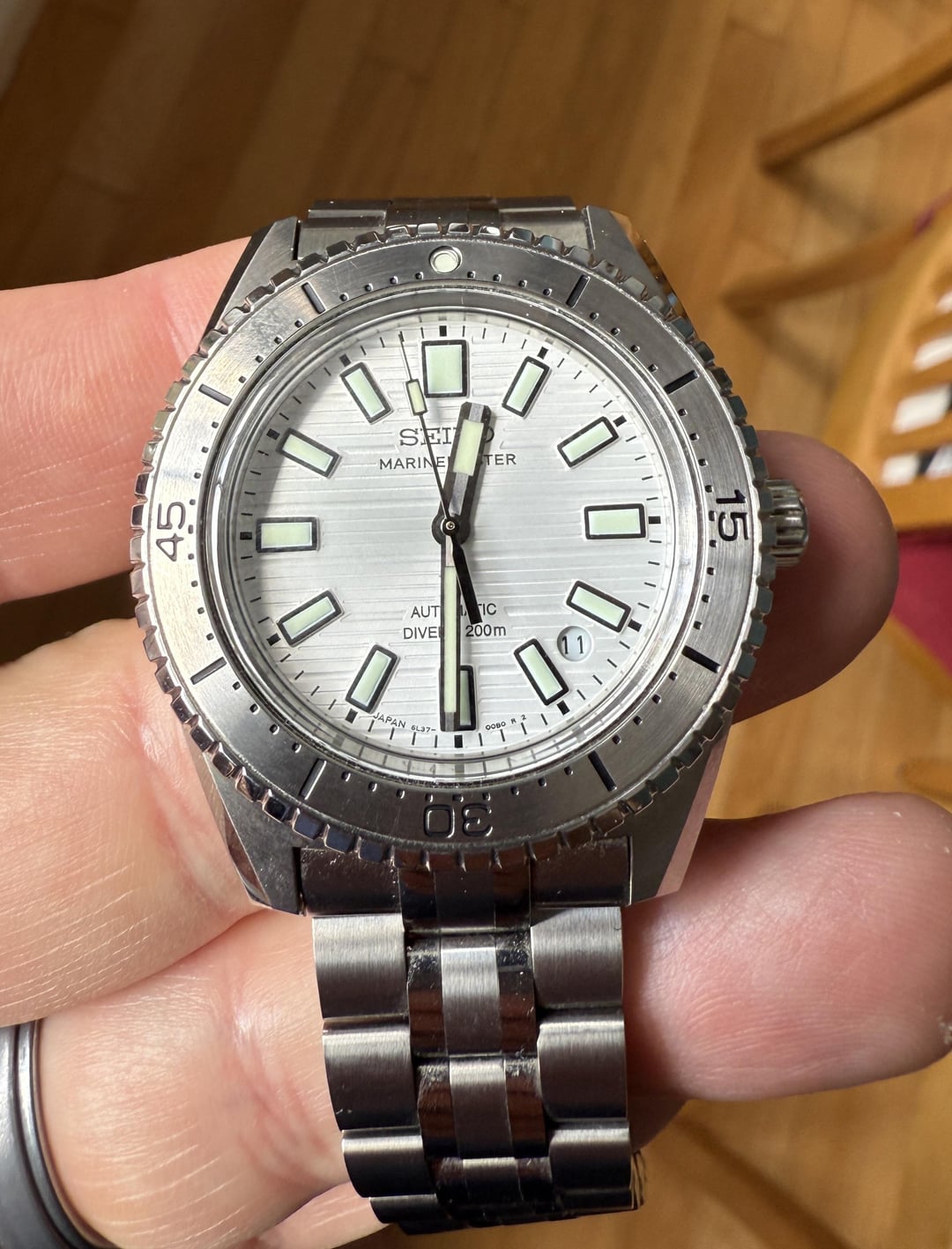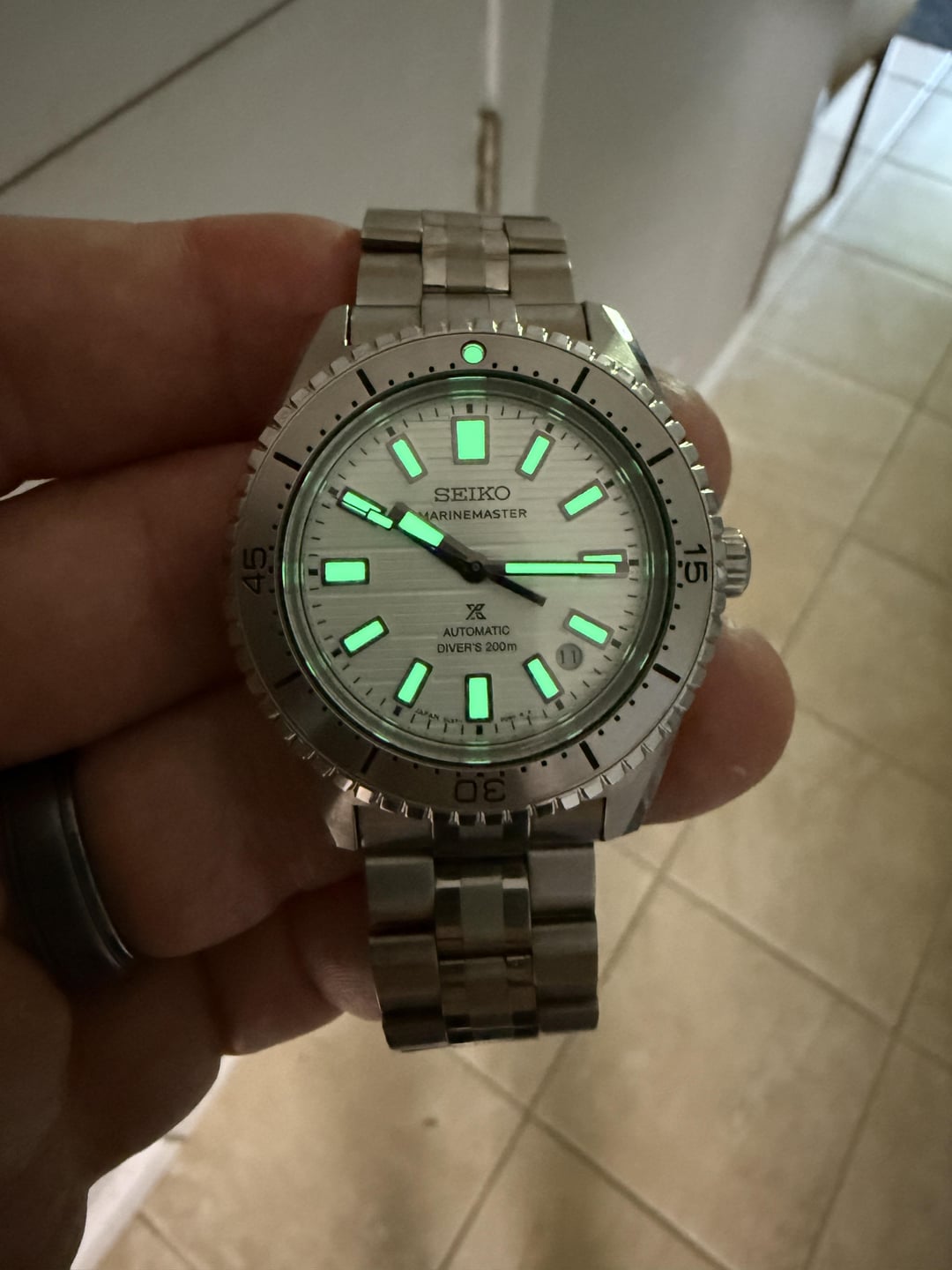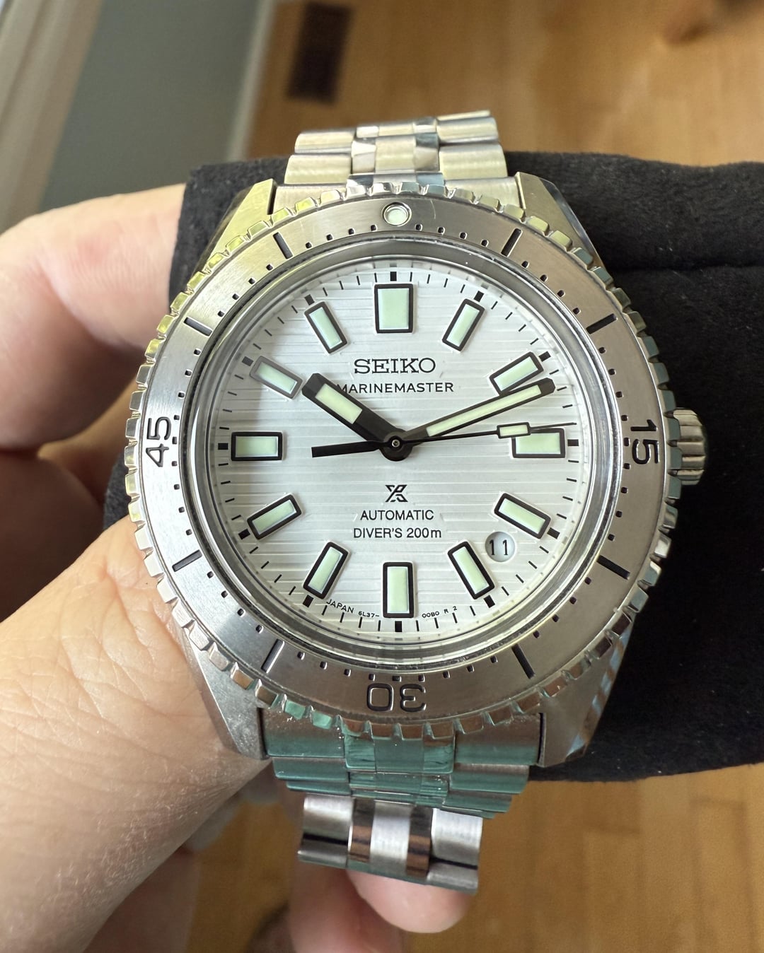 Selling my minty Seiko new gen smaller Marinemaster LE White cool textured dial. Excellent condition, full kit, box, tags like new. Worn a few times but been sitting in my watch box mostly. This version is a much more wearable 39.5mm than my MM300. It also comes with a new bracelet with ellipse-shaped links and a slim clasp with micro-adjustments, enhancing comfort and much better than the MM300 bracelets. Display Caseback new for a MarineMaster also. Seiko Caliber 6L37 Auto, Caliber 6L37 has been adapted from the earlier Caliber 6L35 to have greater shock resistance while maintaining the slender profile that characterizes the 6L movement family. PM for any questions, Not looking for trades on this one currently. Have done a lot of deals here so buy with confidence. Looking for $1690 USD PPGS shipped in CONUS Cheapest I’ve seen it posted