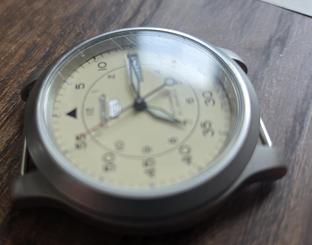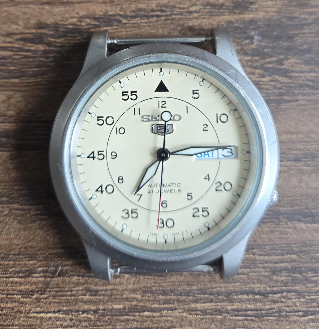 Sekio 5 SNK803K2, great watch in 100% functional condition with some minor cosmetic scratches (see photos) the cream/tan dial is i think one of the best looks for the sekio 5 and this is the cheapest ive seen one listed, free shipping, I may not have flare here but I do on other subs including gafs feel free to look through my posts
