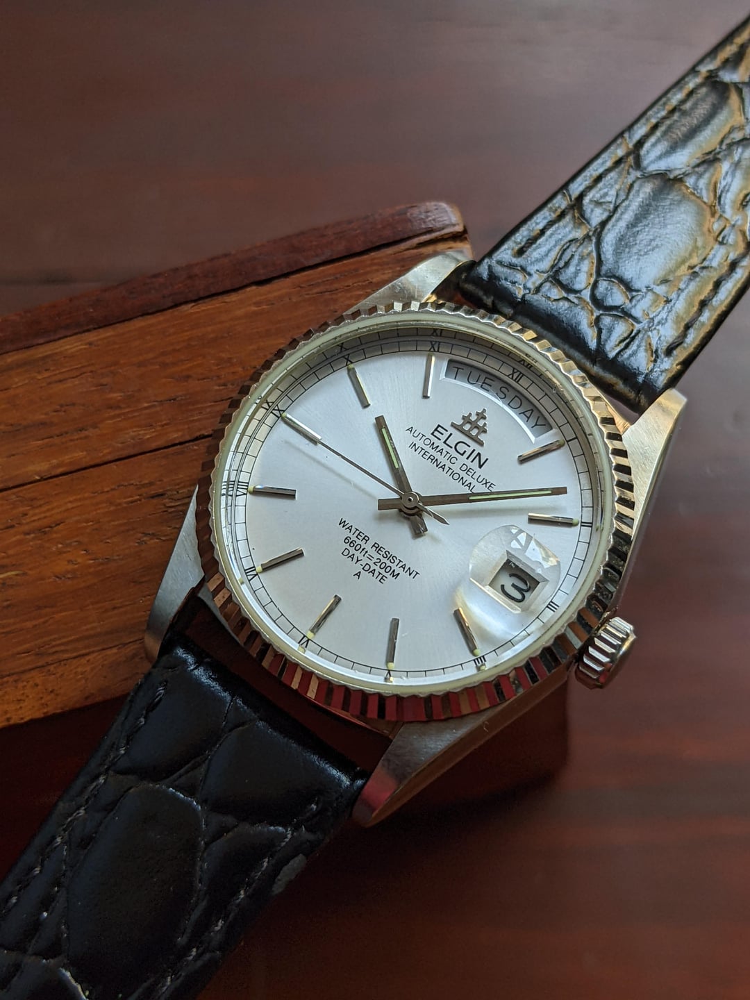 ![Thumbnail [WTS] Rare ELGIN Automatic ⚙️ Day Date with Fluted Bezel Silver Sunburst Dial for sale 💵 $299 (Shipped) 🚢 Video Attached 📽️ 6](https://cdn-cf.watchpatrol.net/120x120/img/full/cb9f1133758b7ad2b99af1b334483c8f1cae6301.jpg)