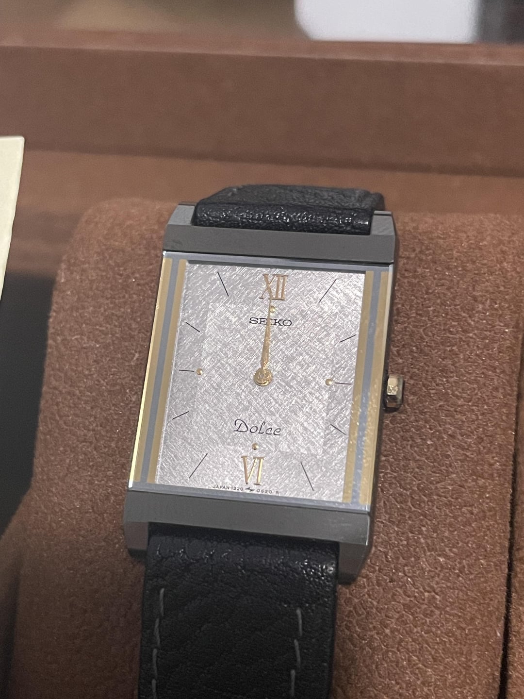 Left: Seiko Essentials Ref # SWR049 * basically new worn once * asking $120 net to me Right: 1986 JDM Vintage Seiko Dolce Ref # 1220-5300 * super clean no scratches worn twice * ceramic case * sapphire crystal * asking $140 net to me ***TAKE BOTH OFF ME FOR ONLY $220*** pm me for inquiries and additional pics!