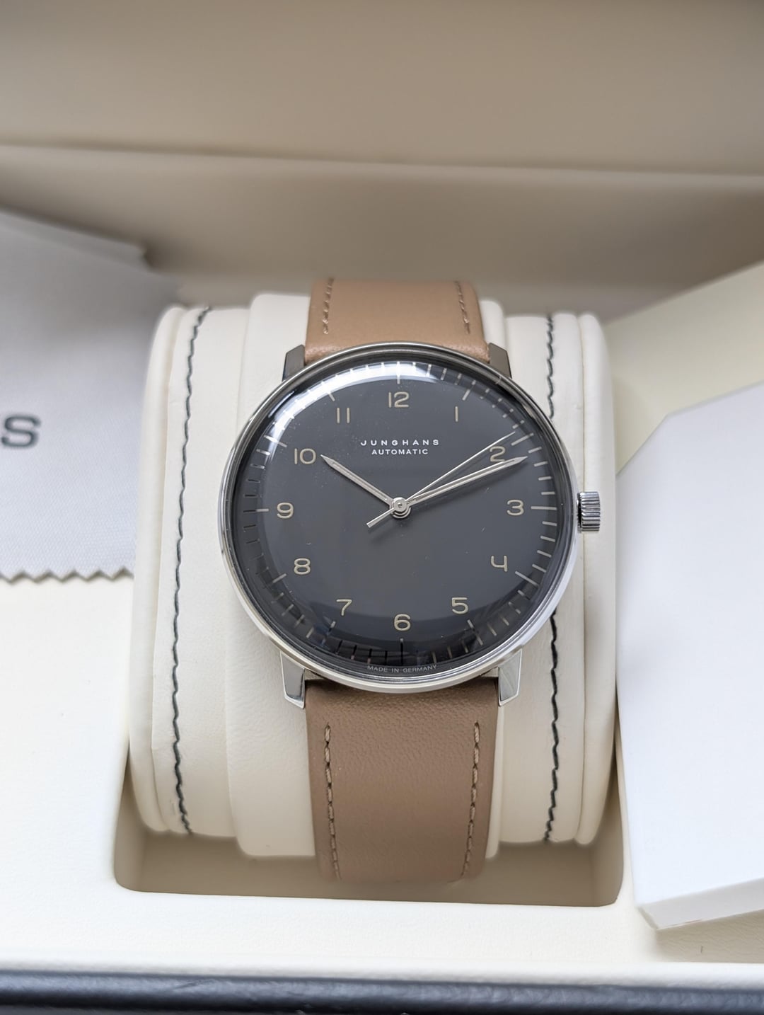 **Junghans Max Bill Anthracite Grey/Gray** * 027/3401.04 * Near new, strap unused * Original box and materials included * J800.1 automatic movement with up to 38 hour power reserve * Stainless steel case, 38mm * Convex hard plexiglass with coating for enhanced scratch-resistance * Polished anthracite dial with printed hour markers and minute track * **$****~~780 shipped~~**~~, ConUSA, PPFF or Venmo~~ sold