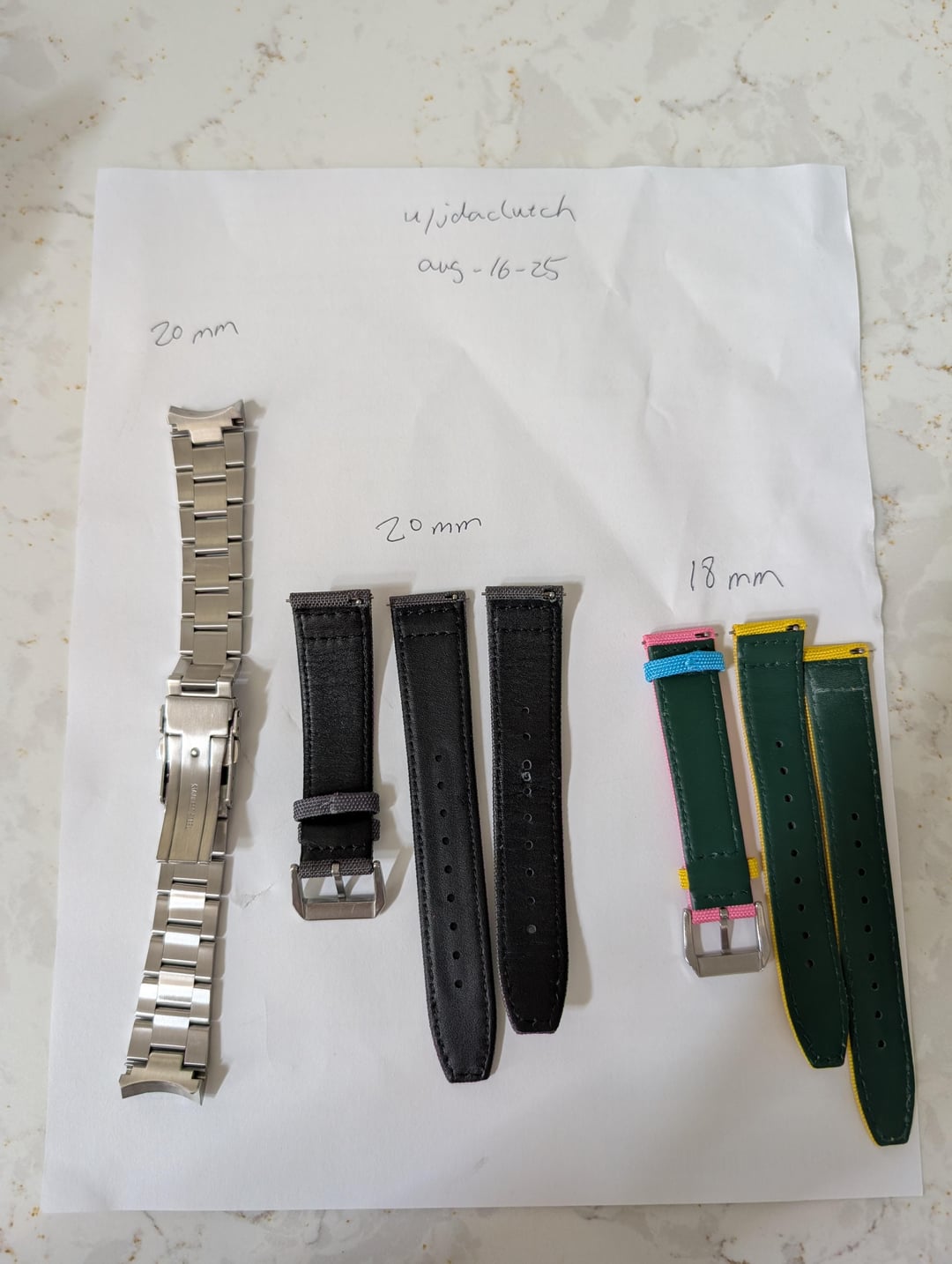 Good afternoon, WatchEx fam, doing some strap cleaning this afternoon. All are almost like new or in great condition: 20mm tapered down to 16mm DC23 Diver Case oyster Bracelet, also fits Seiko 5 watches SRPE51, 53, 55, 57, 61,63. 20mm like new- looking for $25 shipped 20mm strap habit black sailcloth, I punched one extra hole in between, the long piece never been worn. $14 shipped 18mm straphabit Ride to Conquer Cancer x StrapHabit 2025 Premium Sailcloth Watch Straps. I bought two of these, one for me and one for the Mrs. She likes the 23 version better. All proceeds gone to the charity. I paid $29 for it, asking for $15 for this one. Just in time for cancer awareness month. Shipping included within CONUS, Thanks for looking .