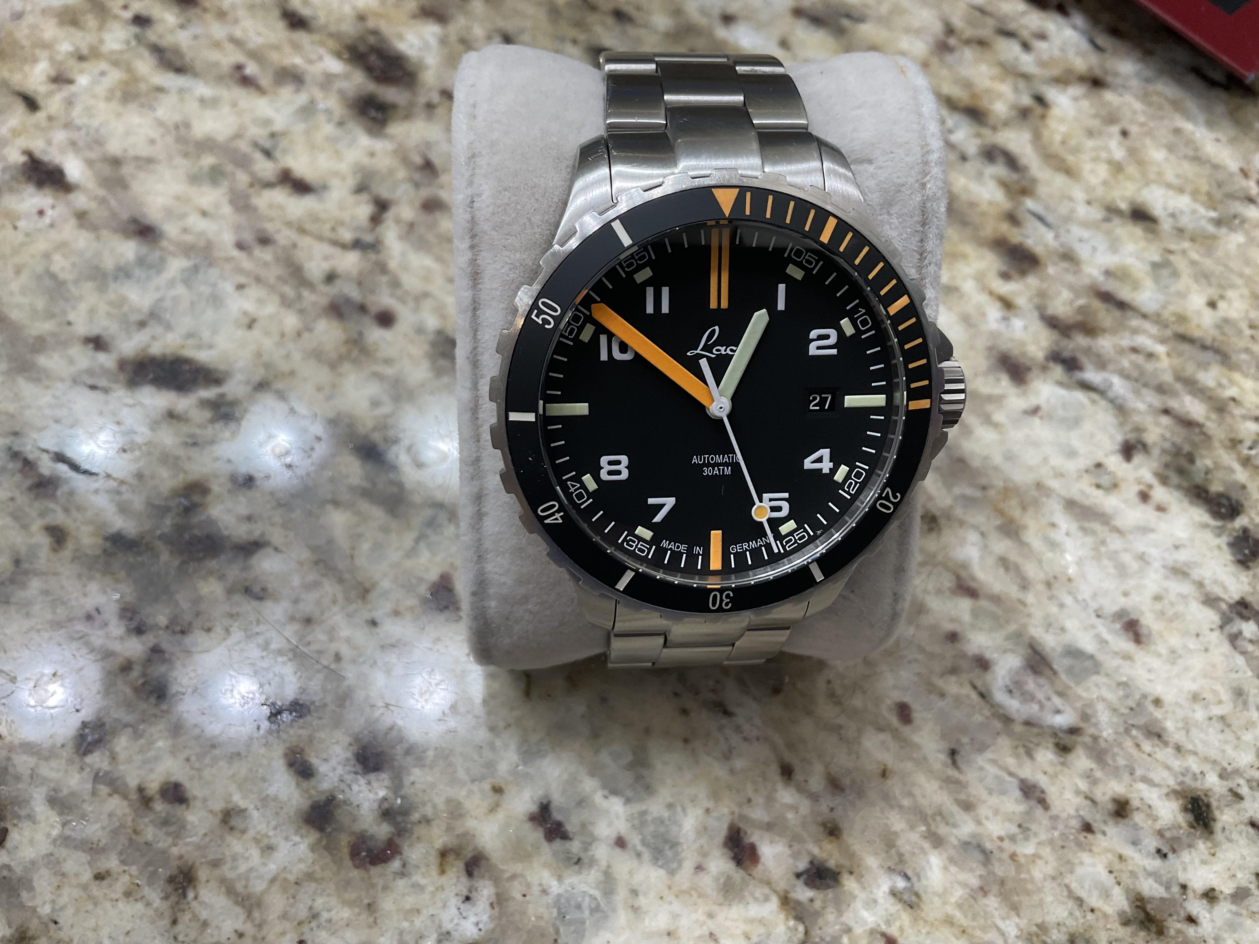 Decided to part ways with my Laco Himalaya 42 as it just wasn’t getting the wrist time it deserves Timestamp and more pics https://imgur.com/a/hqQkTag $525 shipped to you, includes box, manuals, warranty card (2023) Watch case, bezel and crystal in very good shape. Bracelet pretty good- some scratches from wear.