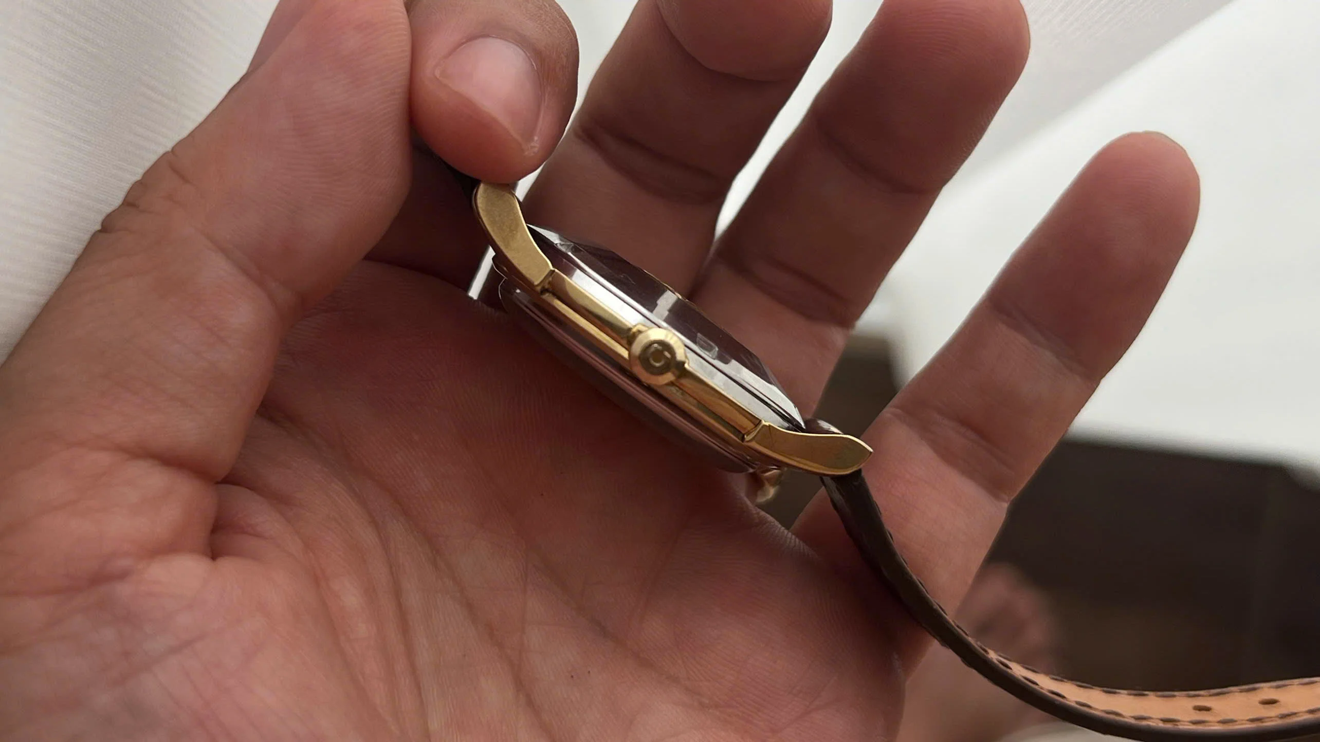 Strap: Aftermarket leather strap and buckle.