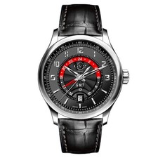 | Giromondo GV2 By Gevril Mens Swiss Made GMT Black watch | Silver Dial Wristwatch watch-gang (895) |
