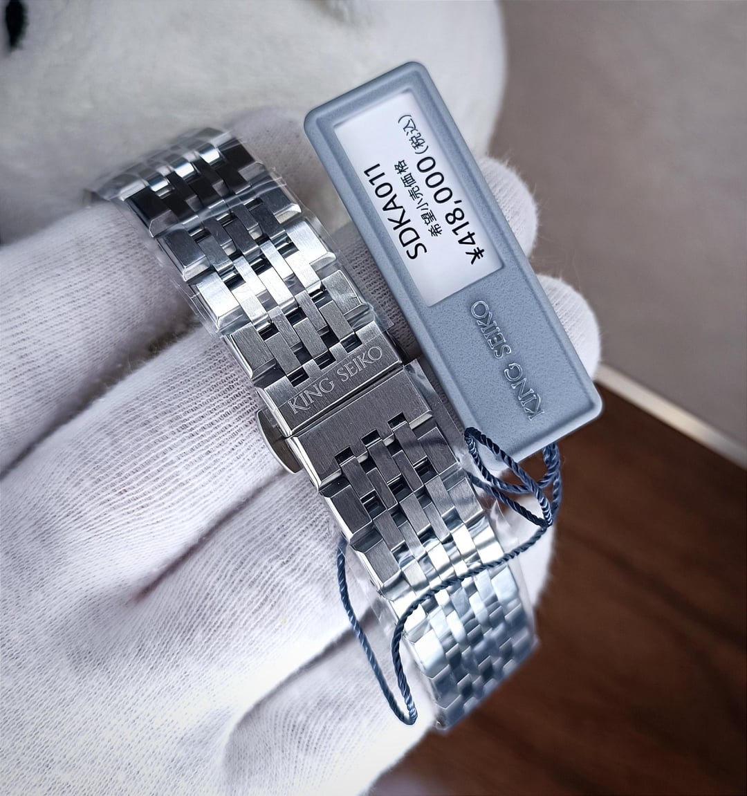 Hello r/WatchExchange, I’m selling a JDM KING SEIKO "KSK SDKA011" featuring a beautiful plum-red dial with an engraved Kameido plum blossom pattern — a cultural symbol of Japan that embodies artistic depth and refinement. Condition: Brand new, full set, with 3-year international warranty. Elegant design that inherits the refined beauty of the second-generation King Seiko “KSK.” This model features large, long hour and minute hands with three-facet cuts, enhancing legibility and adding a sense of luxury. The case is crafted with bold multi-faceted cuts, combining mirror-polished and brushed finishes, staying true to the original design while evolving into a more modern style. Additionally, the plum-red color dial is newly developed to harmonize with the sharp-edged case, creating a sophisticated impression on the wrist. Details: Movement: Automatic 6L35 (hand-winding capability), 28,800 vph, running stably at around +5 seconds per day Case Material: Stainless steel Case Size: 38.6mm diameter, 10.8mm thickness, 45.3mm lug-to-lug Crystal: Box-shaped sapphire with high-quality anti-reflective coating Bracelet: Original Seiko stainless steel bracelet (highly rated for its quality and finishing) Water Resistance: 5 bar Warranty: 3-year international manufacturer’s warranty (with warranty card) Accessories: Original box, warranty card, and complete purchase papers Album:https://imgur.com/a/RTBdrAM Timestamp: included in the post! Price: $2,550 USD (shipping not included). Shipping & Payment: Shipping: Worldwide via FedEx (2–3 business days depending on location) Shipping Cost: $50–80 USD depending on destination Payment: PayPal Friends & Family or Goods & Services (buyer covers the 4.6% PayPal fee) Thank you very much!