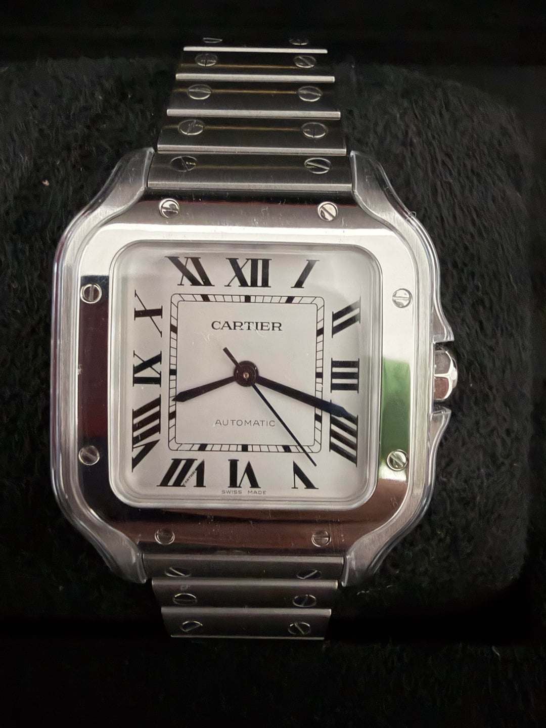 Looking to sell my Santos de Cartier Medium Model WSSA0029 It is in Like New In Box. Tried on at the AD to get it fitted, but has never been otherwise worn. Comes with plastic cover over the polished bezel and full presentation. It comes as a full kit, even with the white sticker tags \-Warranty card dated 8/8/2025 from AD Asking $6700 shipped and insured. Payment via wire or Venmo FF. Retail now is $7750 + tax!!! Get this and save yourself a ton of money. PRICE IS FIRM. NO TRADES. Please PM with questions. EDITED TO 6700 SHIPPED AND INSURED!