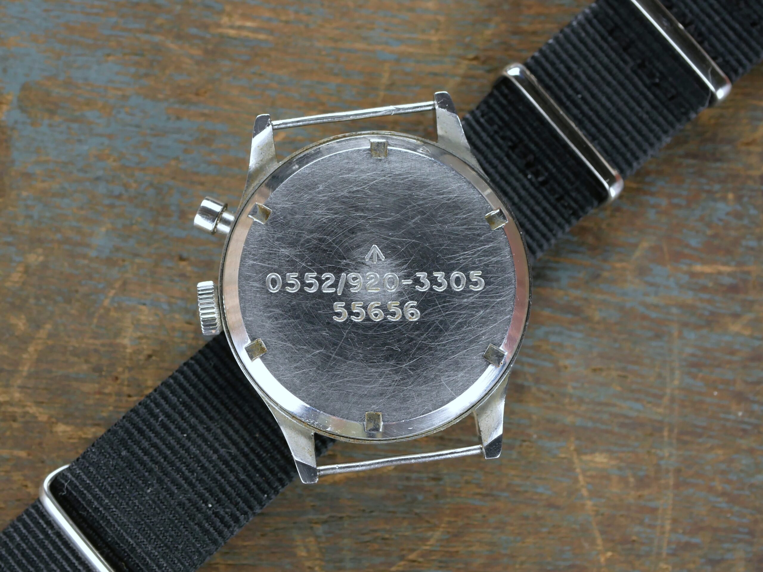 These beautiful chronographs were issued in three series. The watch for sale is a Lemania Series II example that dates from around 1950 to 1955 and was issued to the Royal Navy Fleet Air Arm.