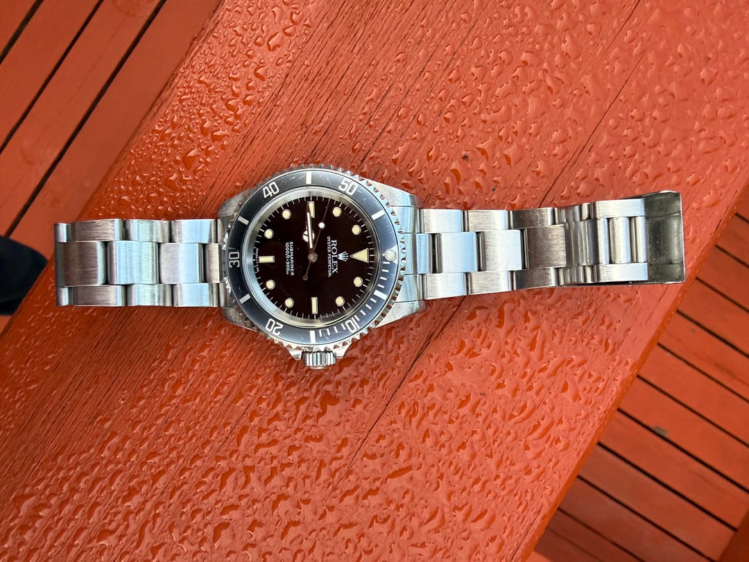 Hey WatchEx, up for sale is my 1990 Rolex Submariner no date 14060. The bezel has faded to a cool bluish grey color and the hands and indices are developing an awesome eggshell patina. I bought this from Scott at Vintage Worn about 1.5 year ago and am selling to try out a kermit, you can see some better pics on his listing: https://vintageworn.com/products/1990-non-date-14060-great-patina Happy to FaceTime or use another video chat to show the watch online, or provide any other requested angles/pics. In addition to several transactions on here I am longtime member of TRF and have plenty of references there, too. Face to face transaction welcome in Portland, Oregon with beer or coffee on me. Priced at $9,993 + label, or will trade towards a sub LV with cash on my end. Wire, Zelle, or PP F&F.
