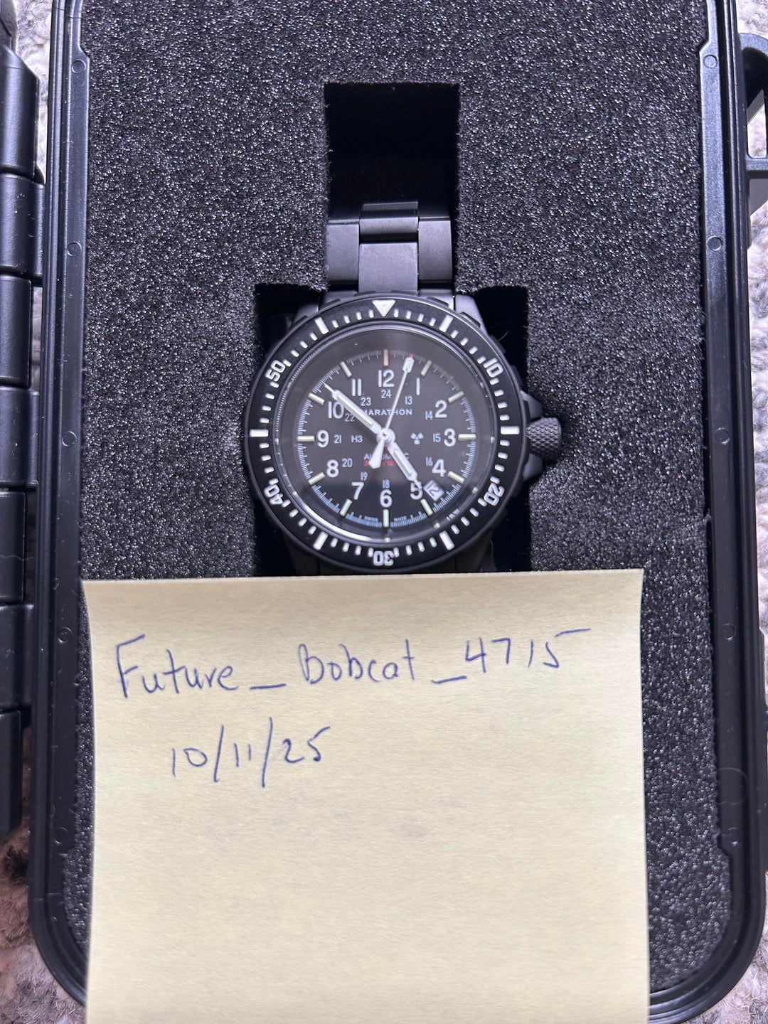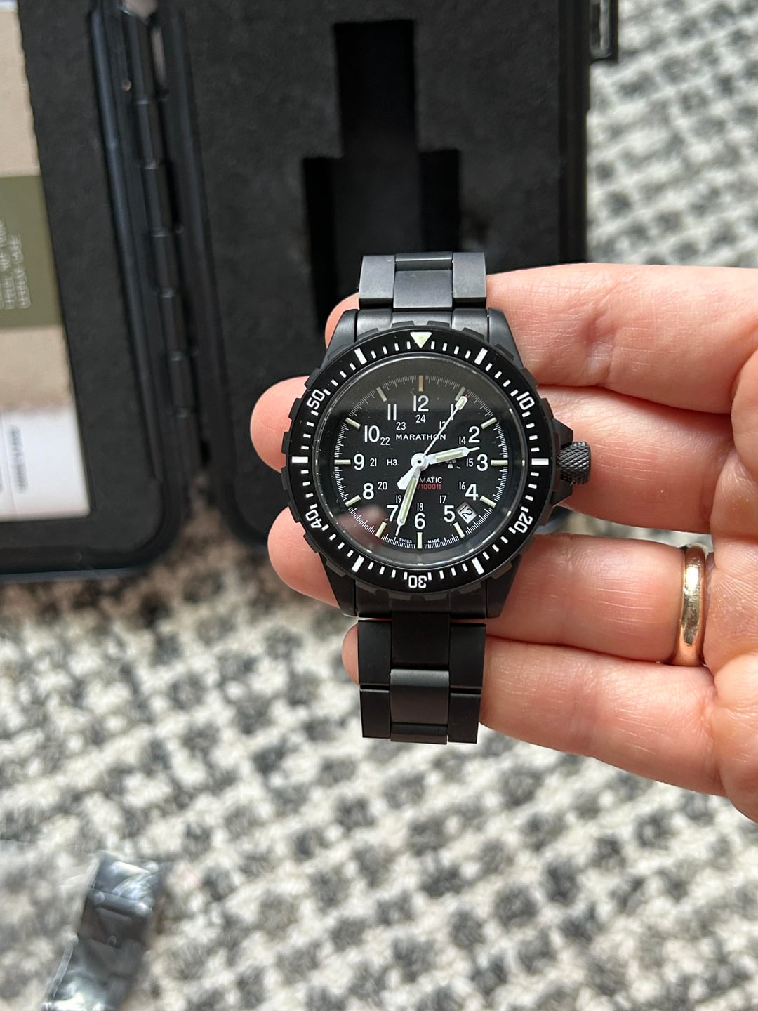 Selling my Marathon. I bought it last year directly from Marathon before the price hike. It is barely used and does not show any marks, scratches, or imperfections that I can see. The sapphire is flawless. All extra links included, and it’s a full kit. $1950, CONUS only. Thanks!