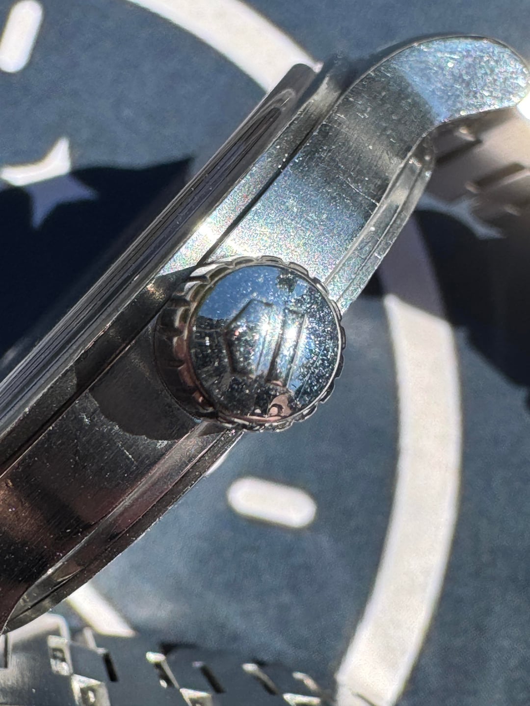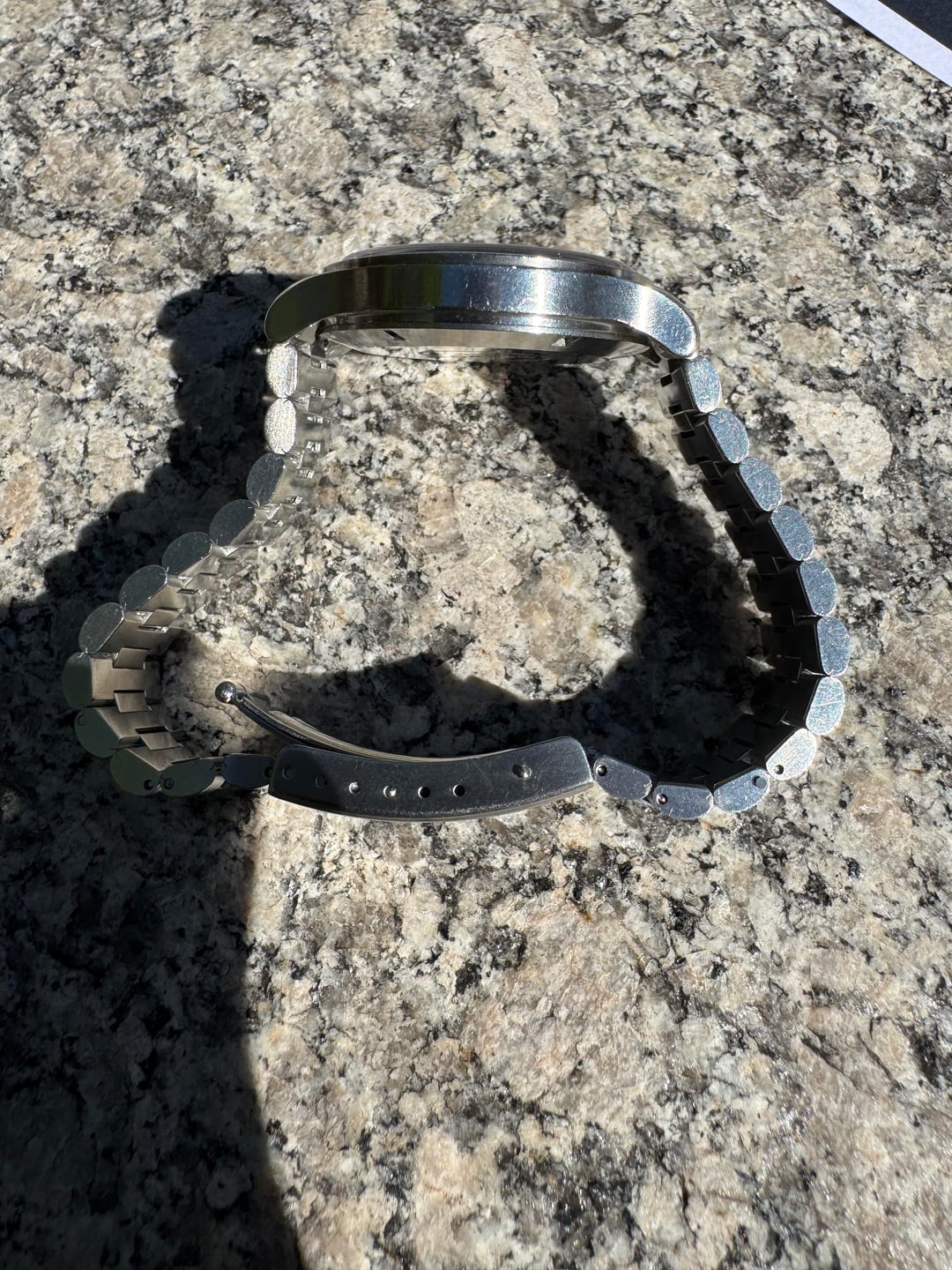 Condition: Fair for its age — light wear consistent with regular use, the crystal has a scratch, and the bracelet has minor stretch. The crown is aftermarket and doesn’t screw down, but does function smoothly. A replacement can be [found on ebay](https://ebay.us/m/MLJaTD) for about $100. Keeps time within an acceptable range. Specs: • Case: 36mm stainless steel • Movement: Automatic • Dial: Black with very stong luminous markers • Bracelet: OEM stainless steel bracelet Watch only $~~950~~ $875 paypal ff, +5% for gs. Please feel free to check out our other listings. This is the cheapest you can get one of these for on a bracelet.