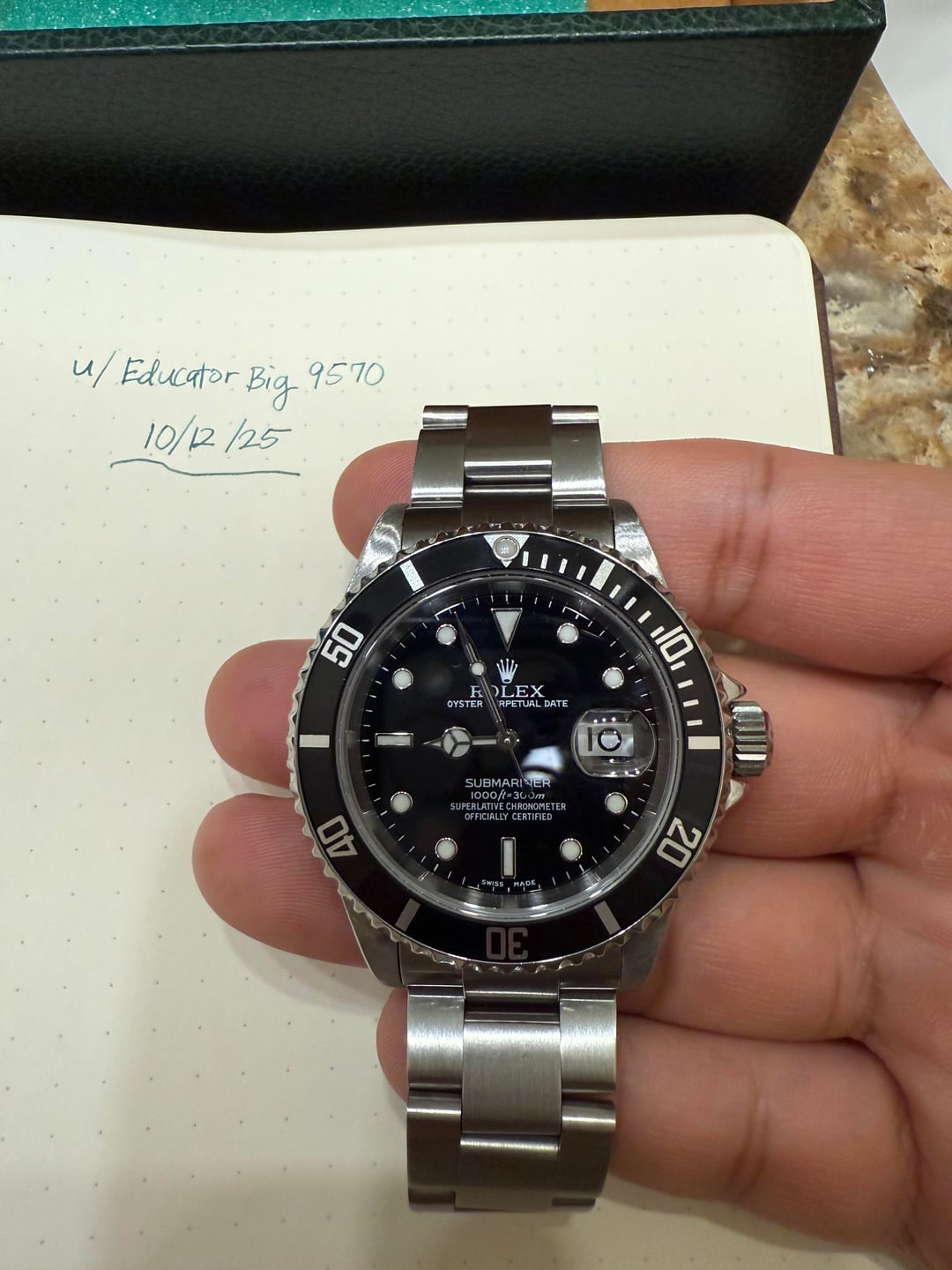 Hi all, Selling my beloved Rolex Submariner Date 16610 Y-serial number, 2002-2003. It will come with box, no papers. Happy to send any additional pictures or verifications Prefer Zelle but open to Venmo or PayPal. $8550 obo + shipping of your choice. Open to trades or offers. Thanks!
