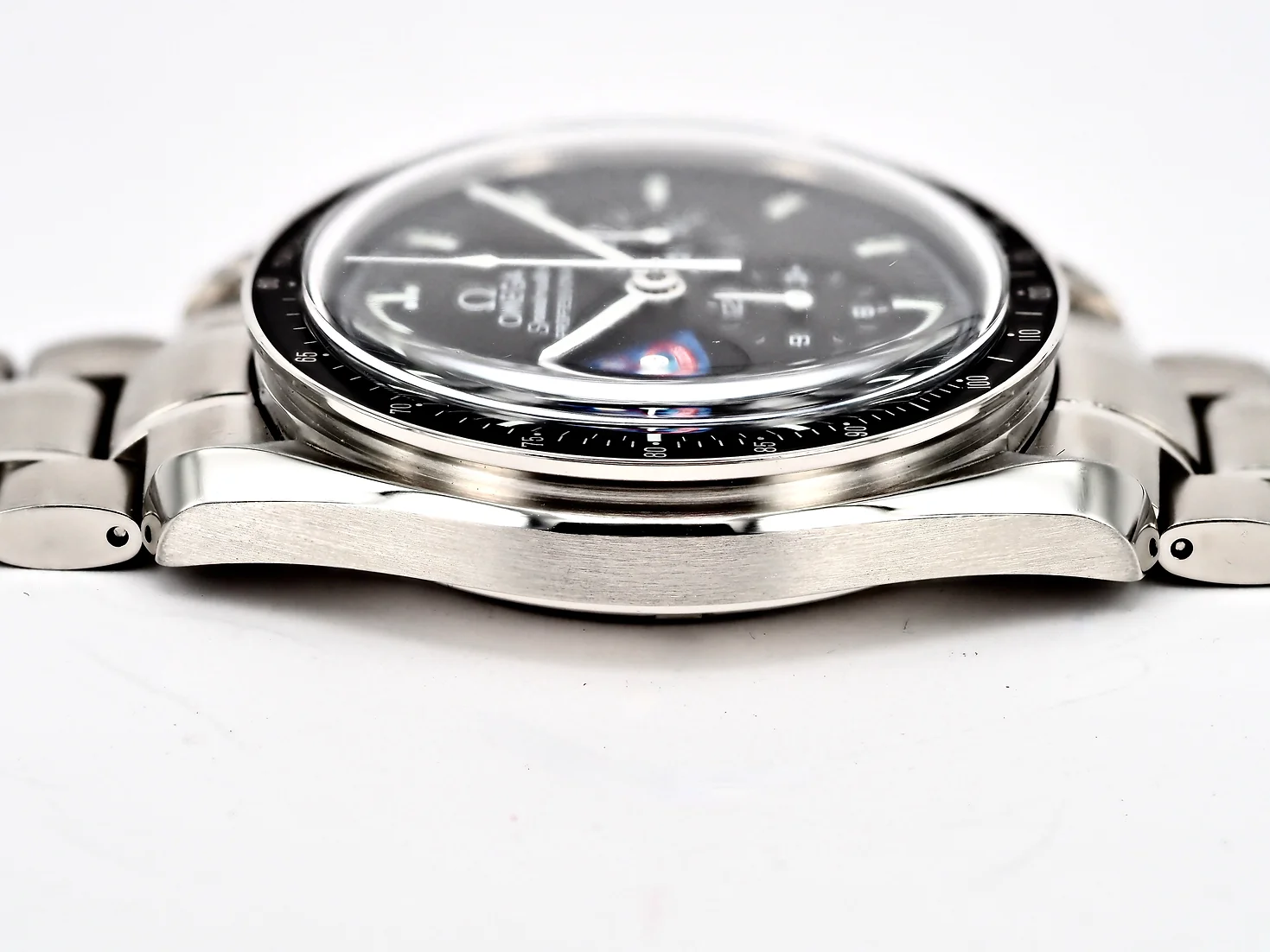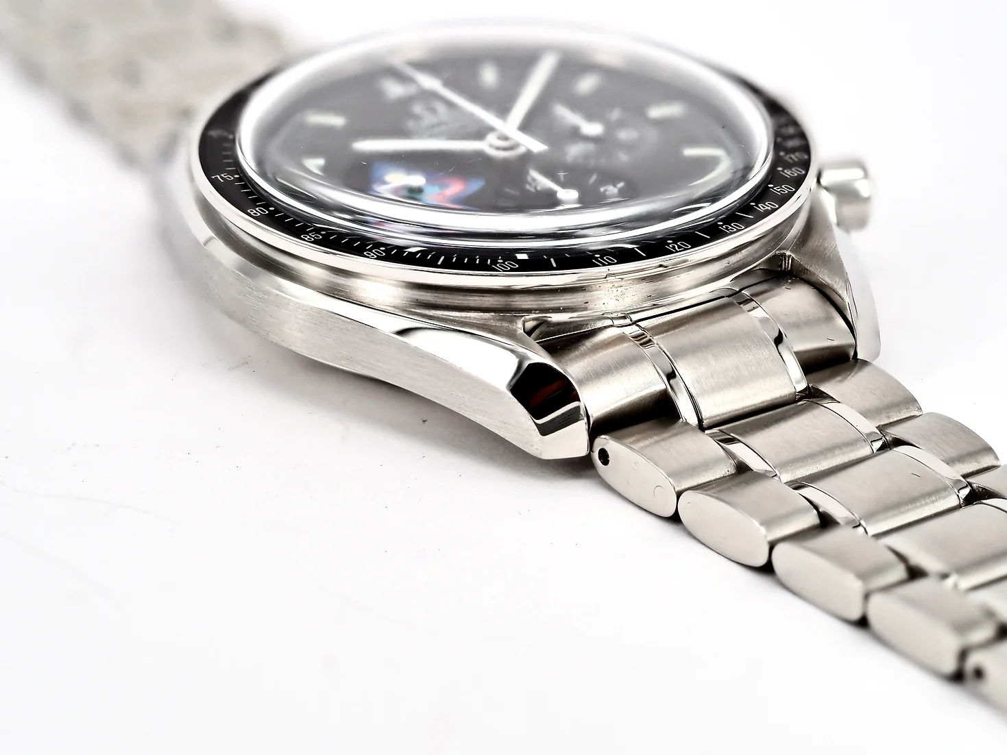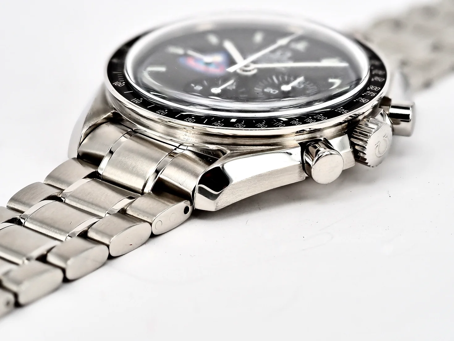 Dial: Black dial with the Apollo 8 Mission patch at 9 o'clock. Superluminova markers