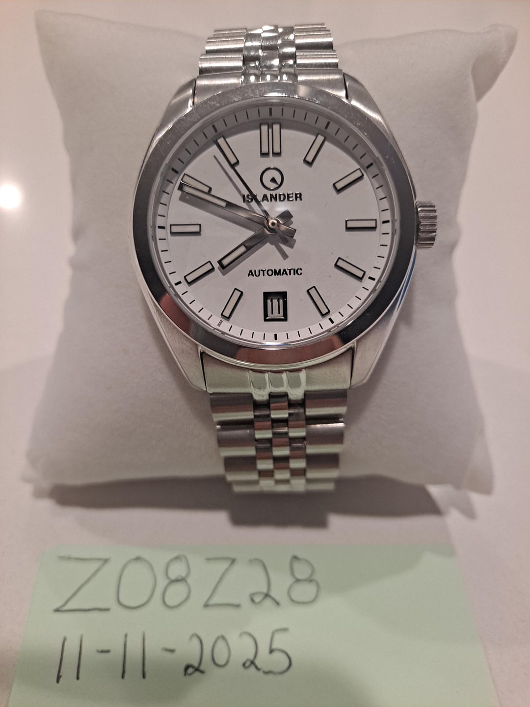 Selling my nearly mint Islander Brookville white dial, 38mm, High beat watch using a Miyota 9000 series movement. Selling only to make way for new watches. Watch was worn almost exclusively with a cloth type strap so the bracelet is in great shape. Asking $225 OBO and I will pay shipping and money transfer fees within the 48 states.