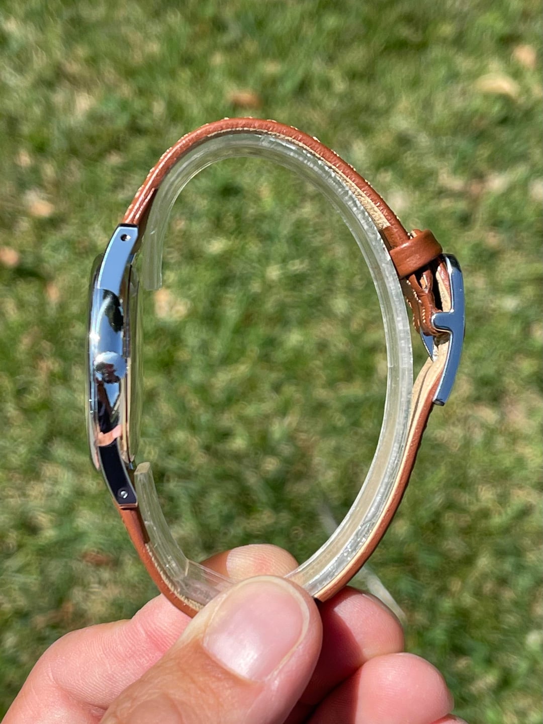 Hey all! Here is for sale a beautiful and pretty rare Nomos Orion Neomatik 393 with gorgeous champagne dial. Watch is in great condition, for sale is the watch only. Case measures 36.4 mm, height 8.5 mm, lug-to-lug 45.0 mm and 18mm lug width. Case is in great shape, it has some signs of wear, but no major dings or scratches. Caseback is fitted with sapphire crystal so you can enjoy the beautifully decorated movement. Crystal is sapphire, has no blemishes. Crown has Nomos logo. Best thing right here is the dial, it has a gorgeous champagne dial which was launched with Neomatik line with the in-house DUW 3001 movement. Dial color looks beautiful under any light conditions and looks even better in person. Nomos kept their minimalistic design with steel hands and baton hourmarkers and made an orange seconds hand. Movement is in-house DUW 3001 automatic which is pretty thin actually, due to seen through caseback you can enjoy it’s beauty with decorated parts and mix of silver, blue and gold colors. At the moment of sale watch keeps +19 sec/day, please check timegrapher pic in Imgur gallery. Strap is brand new brown 18mm DiModell leather fitted with authentic Nomos old fashioned buckle which reminds vintage Omega buckles. Watch looks gorgeous due to its classic Bauhaus design, perfect 36mm size and beautiful champagne color. Album: https://imgur.com/a/xik9cpG Timestamp: https://imgur.com/a/xik9cpG#3X3BRDo Price is $1250 through PayPal F&F. EMS International shipping is included in price, I ship international. I’ve sold a couple watches here, so you can check my feedback on r/WatchExchangeFeedback I am not interested in trades. Please PM me if you have any questions