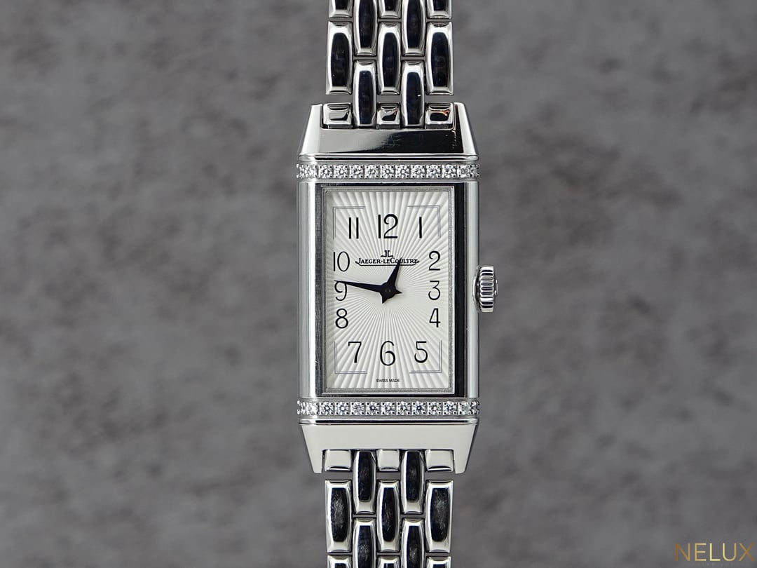 [timestamp](https://imgur.com/a/Srn95GL) The 2024 Jaeger-LeCoultre Reverso One (ref. 3288120) brings the elegance of the Art Deco era into a modern ladies’ timepiece. Its elongated rectangular case, sunburst guilloché dial, blued hands, and double rows of diamonds on the top and bottom of the case give it a refined and luxurious presence. As part of the iconic Reverso line, the watch features the classic reversible case design, allowing the wearer to flip the watch to protect the dial or reveal a solid caseback perfect for engraving. This example is paired with its factory stainless-steel bracelet and includes five additional Jaeger-LeCoultre leather straps in assorted colors, offering versatile styling options for any occasion. The watch is in 8/10 condition with light signs of wear on the case and bracelet. Crystal is clean. Comes as a complete full set with box, papers, warranty card, and all accessories shown. Model: Jaeger-LeCoultre Reverso One 3288120 Movement: Quartz JLC Calibre 657 Crystal: Sapphire Water resistance: 30m Includes: Full set (box, papers, warranty card) + factory bracelet + 5 extra JLC leather straps Condition: 8/10 (light wear on case/bracelet; clean crystal) Location: Naples, FL Price: $5,000 shipped CONUS (UPS 2-Day Insured) Payment: Venmo, Zelle, PayPal (+fee if G&S), or Wire Trades: Open to trades, no cash on my end All sales are final unless the item is not as described or pictured. Willing to FaceTime, answer questions, or provide raw pictures upon request.
