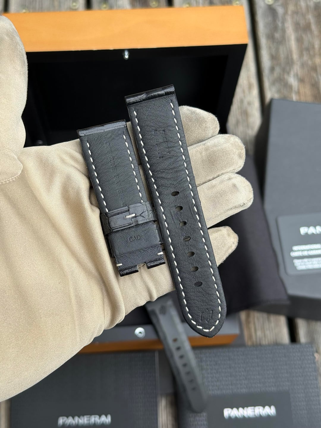 Model: Luminor Marina 1950 3 Day Ref. PAM01312 Case Material: Stainless Steel Case Dimensions: 44mm Bezel: Stainless Steel Smooth Bezel Dial: Black Dial Band Material: Panerai Black Rubber Strap with Spare Black Leather Strap Lug Width: 24mm Original Purchase Date: August 2021 Movement: Automatic, Mechanical Accessories: Full Set with extra leather strap Condition: Nice preowned condition with light scratches on the case, buckle and bezel. MSRP: $9,200 Price: $4,125 shipped! Bank wire price. WA residents subject to sales tax Email: [email protected]