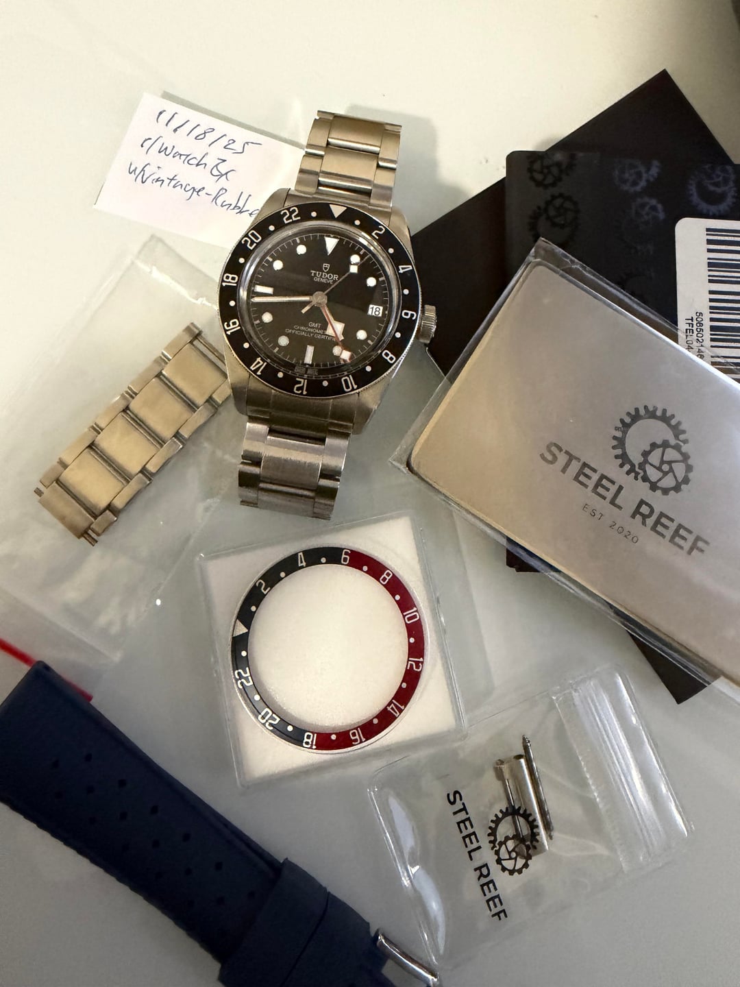 [WTS] Tudor BB GMT M79830RB on non-rivet OEM bracelet, Steel & Reef extension link, additional black bezel insert, warranty till 2027 (+ Tropic Strap)