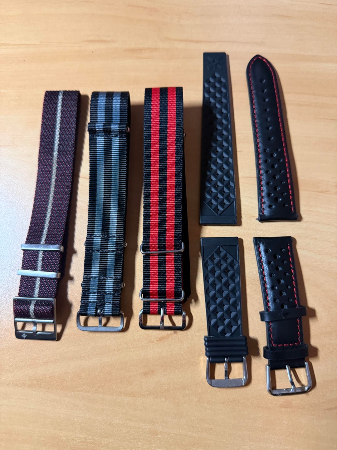Hey, selling red Orient Kamasu. Bought in July 2022. Very good condition, small imperfections visible below the bezel and on the back of the case + some scratches on the clasp. Asking 290€ + shipping (around ~10€ within EU). Included: - Watch itself (Orient Kamasu in red, date window shows days in English and Spanish) - Original box - Additional band (MiLTAT Jubilee) - A bunch of straps bought from NATO Straps