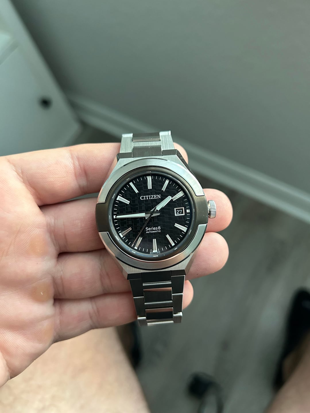 Hello everyone, here I have a pretty special and underrated citizen series 8 watch. The series8 line from citizen is their attempt to enter the higher end watch market very similar to Seiko with the Grand Seiko. These watches are workhouses and have amazing specs- it has a movement specifically developed only for the citizen series 8 line accurate to 5-10 seconds a day and a 50hr power reserve! (And magnetic resistance) The materials and case finishing on this watch is also a step above normal citizen. The crystal is sapphire and has AR coating. And lastly the watch has 100m of water resistance. The watch is in excellent used condition with almost no signs of use and It comes as watch only without any original box or papers. I can include a generic citizen box (the one with the white lid that snaps shut) Price and payment: this watch is priced at $645 shipped within the continental US. Payment via PayPal FF or Zelle please. As I always state, I completely understand that there has been a noticeable rise in scammers within this community lately. I will do my best to make sure you feel as comfortable as possible doing business with me! Please refer to my feedback as well. Thanks for taking a look!