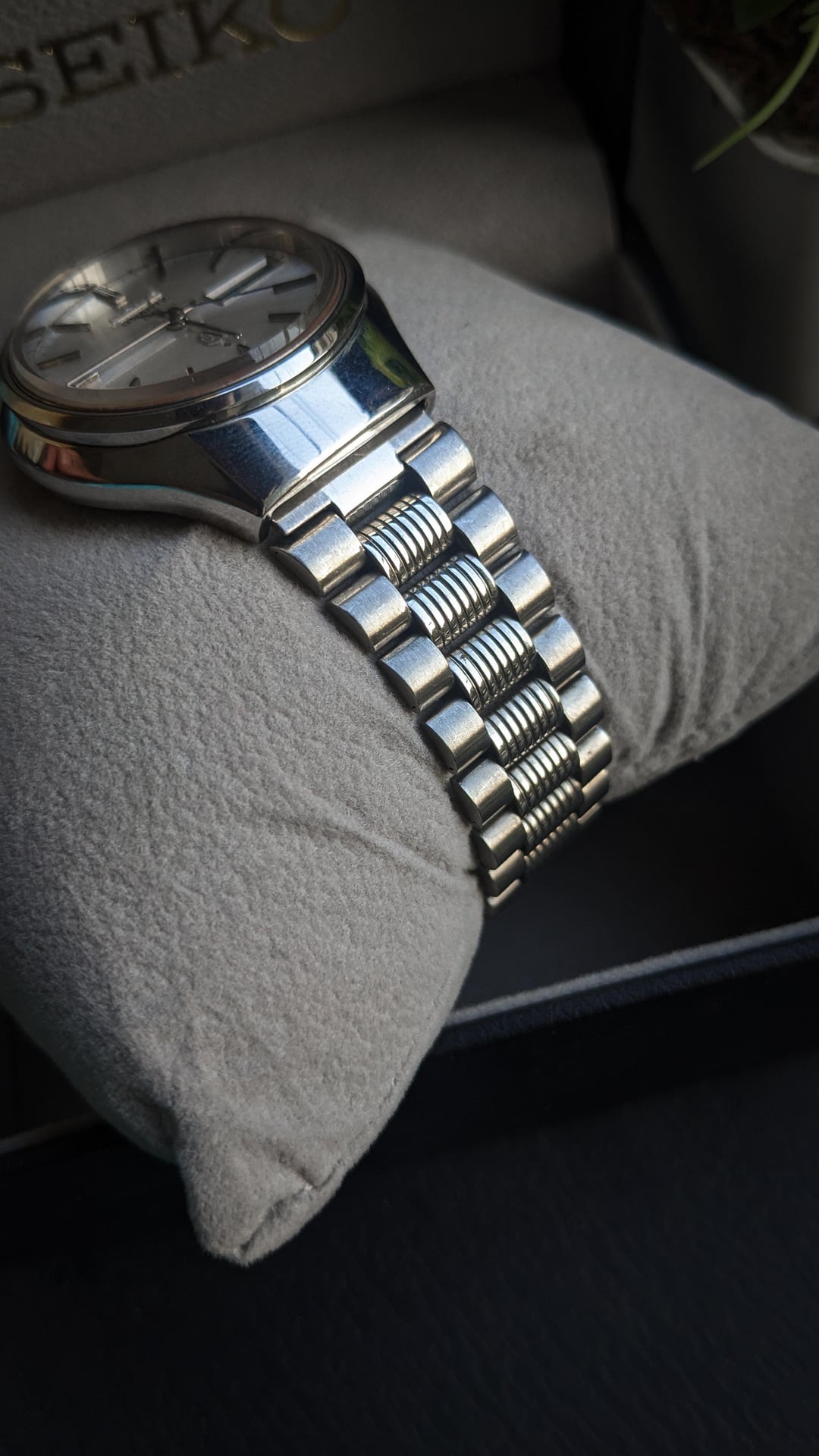 Hello WatchFam, A very beautiful early Seiko QR Quartz from February 1974. Fantastic condition Sunburst dial integrated with aftermarket Engraved bracelet. It have a Quartz movement 3863. The watch contains aftermarket bracelet and comes with an aftermarket Box. Watch reference number is 3863-7010 Quartz movement working fine (not serviced) Watch is in very good condition as shown in the pictures. And can be gifted to your loved ones Watch Measures are lug to lug 42mm with crown 36mm approx. bracelet can fit upto 7.8 inches approx Price $220 Timestamp: https://imgur.com/a/iG4sFHJ