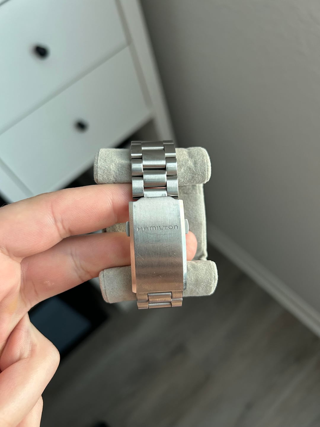 Hello everyone! Here I have one of my personal favorite Hamilton watches, the Expedition. This watch wears super great at 37mm and the quality from the bracelet to the watch is great! This watch was used but is in good used condition with signs of use throughout. This includes small scratches and some slightly more noticeable scratches. Mostly on the clasp as usual. It does come as a full set with box, papers, and links. The watch is running good. Price and payment: This watch is priced at $580 shipped within the continental US. Payment via PayPal FF or Zelle please. As I will continue to state, I completely understand that there has been a noticeable rise in scammers within this community lately. I will do my best to make sure you feel as comfortable as possible doing business with me! Please refer to my feedback as well. Thanks for taking a look!