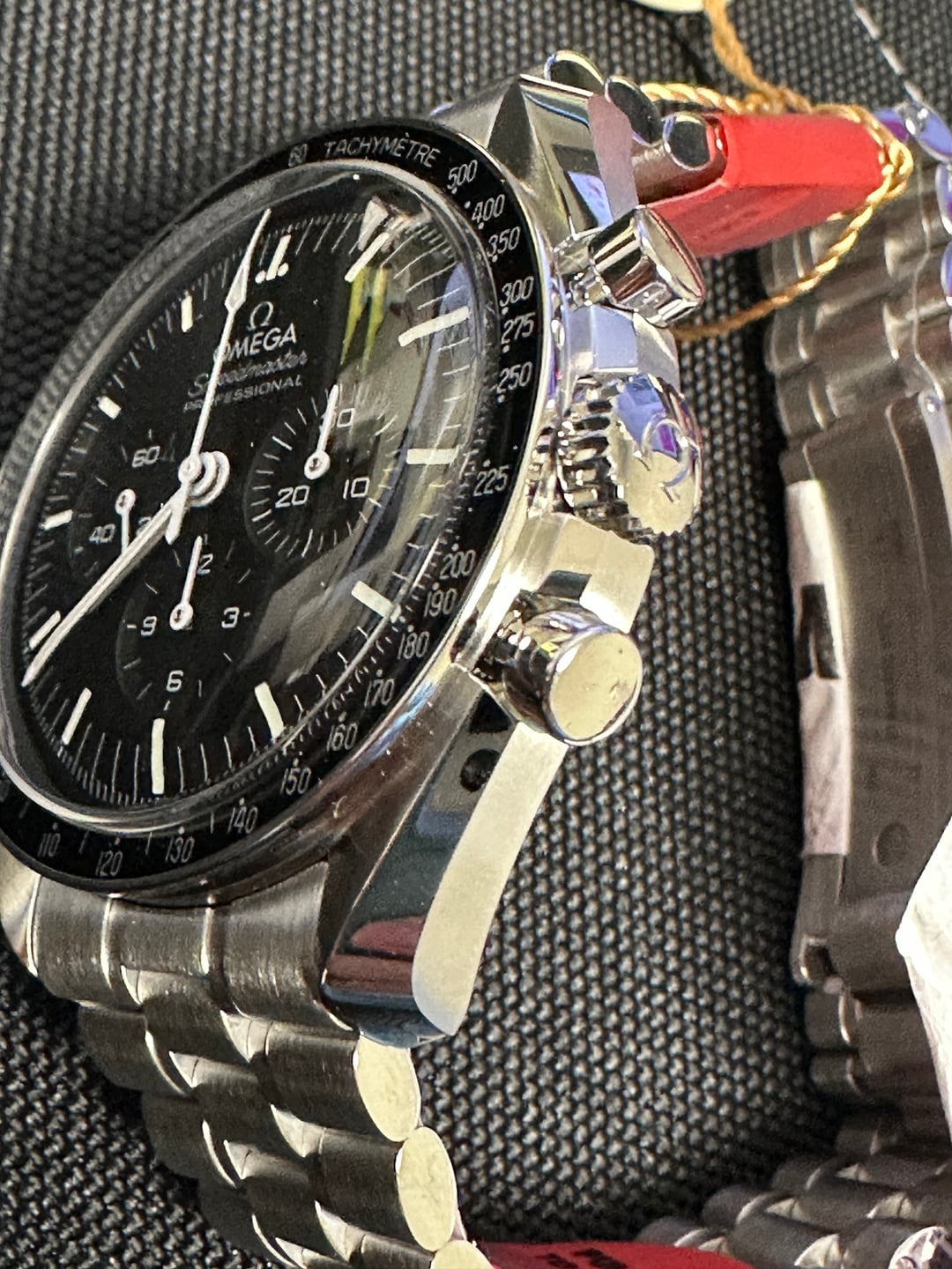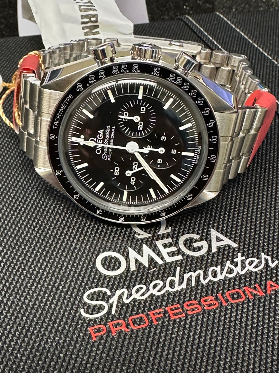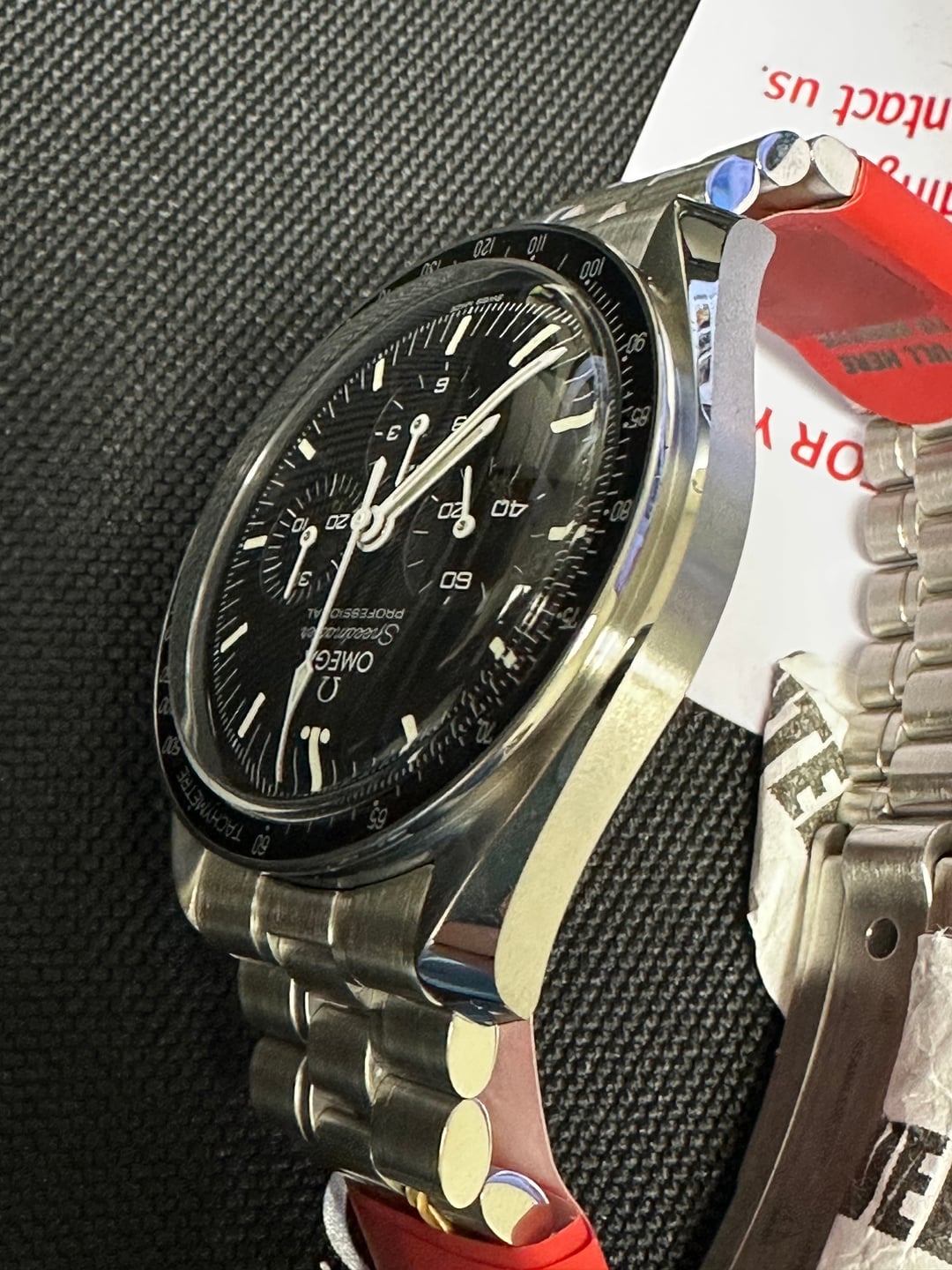 Up for sale is my Omega Speedmaster Professional Moonwatch, reference 310.30.42.50.01.001. This was purchased at the very beginning of my collecting journey from a gray-market dealer (rhymes with NotchRacks). At the time, I didn’t realize their “warranty” is not the same as the official Omega manufacturer warranty—which is the only reason I’m moving this along. **Condition:** Unworn, only tried on once at home for fit Still has that fresh-from-the-box feel Absolutely clean condition across the board **What’s Included (Full Set):** Original Omega presentation box Outer box Operating instructions All cards/paperwork as provided by the dealer - This includes the Pictogram(?) and Chronometer card. This was purchased from a grey market dealer (rhymes with CrotchPaxx). At the time, I wasn't aware that a retailers warranty card wasn't the same as a mfg warranty card. Original bracelet with all links **Details:** Hesalite model Manual-wind Master Chronometer movement Legendary “Moonwatch” design 42mm stainless steel Runs beautifully; never on wrist outside of a 1-minute fit test Price: $5,900 shipped CONUS (insured, signature required). Payment: Zelle or bank wire preferred. **No trades at this time.** Happy to answer questions via PM—please comment before messaging per sub rules.