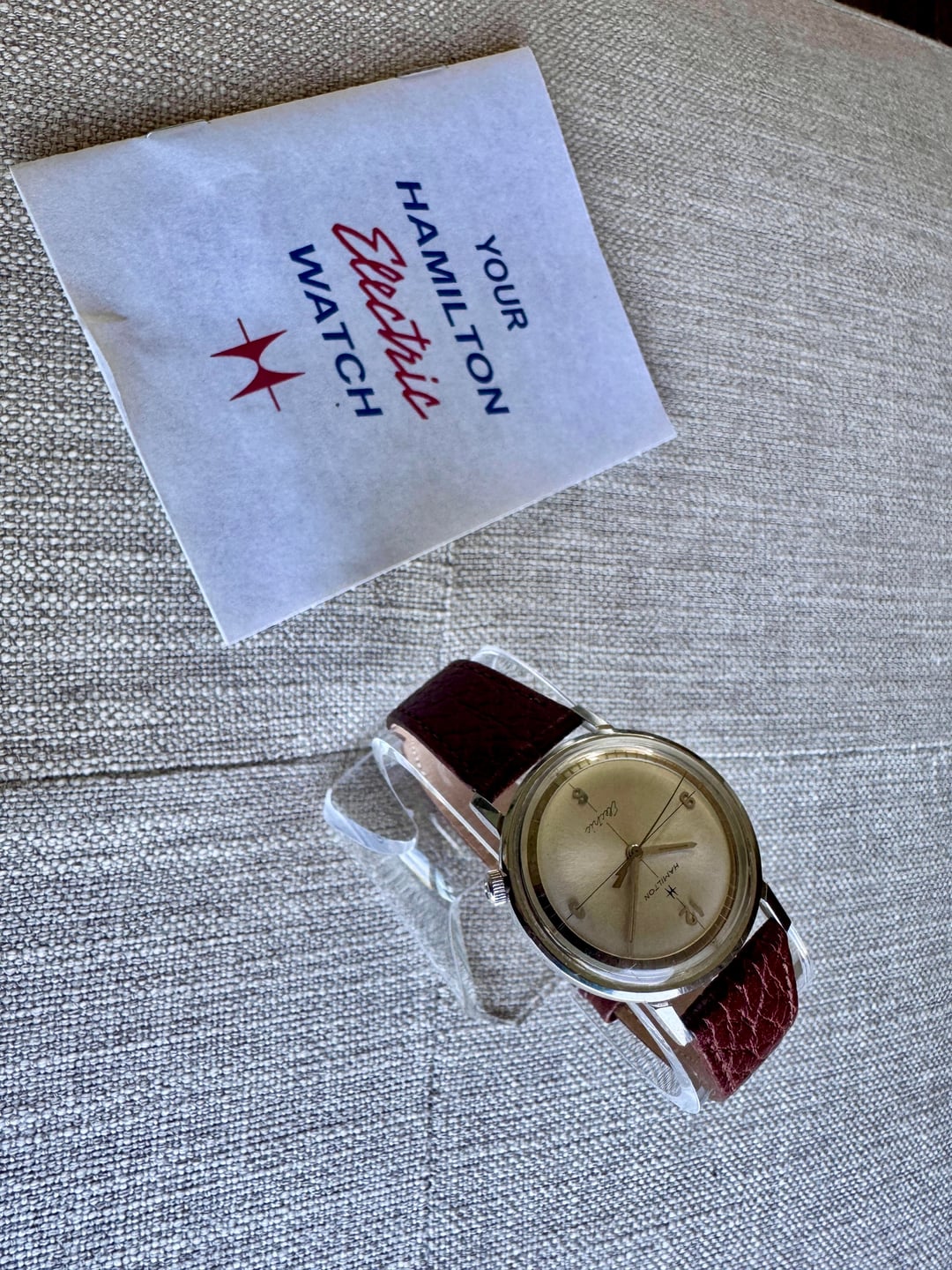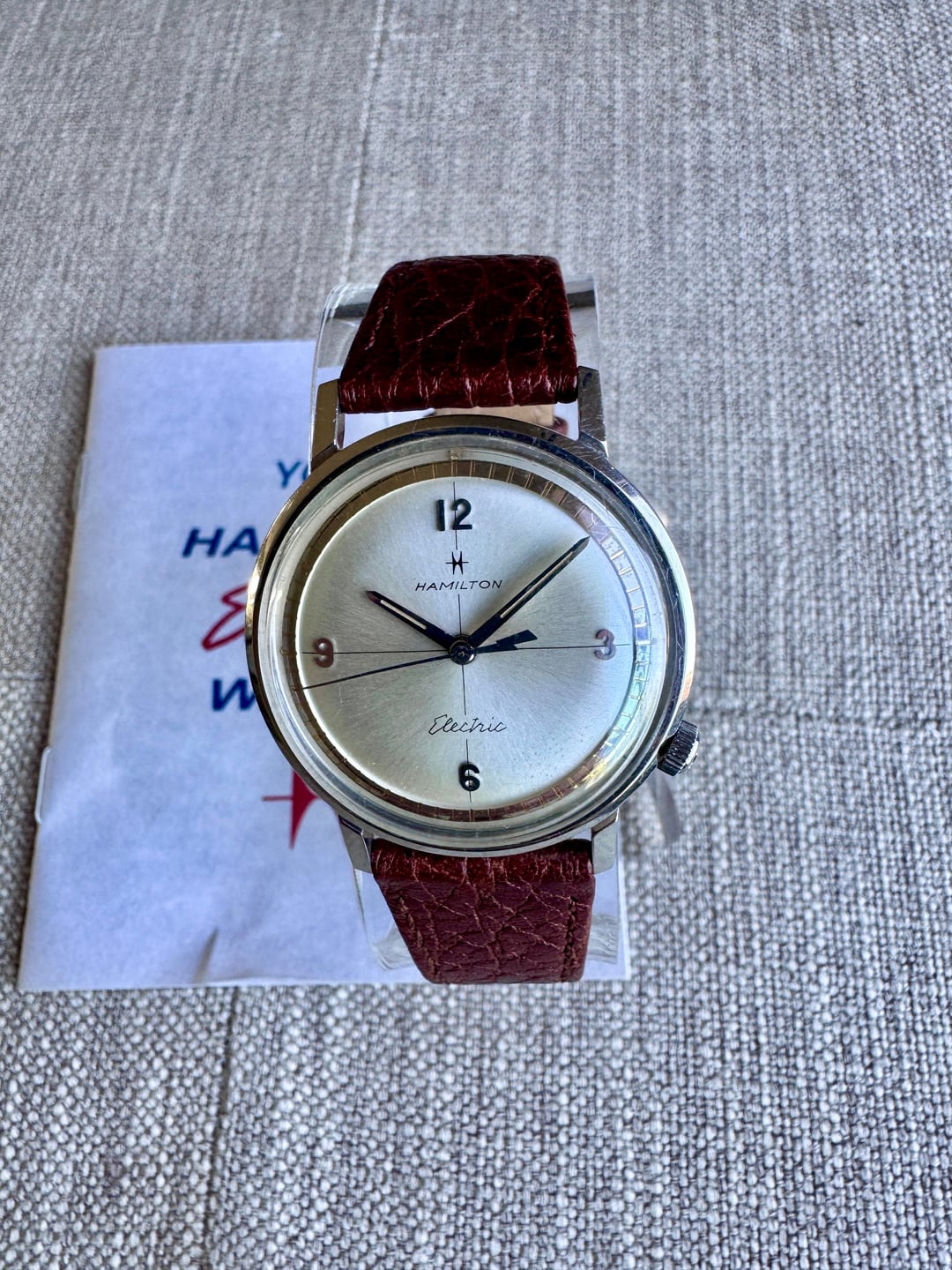 **Description**: This 34mm Hamilton Electric Nautilus 503/508, the world's first electric watch, is in excellent condition for its age and keeps time well. The sector dial coupled with the lightning-bolt seconds hand (take that, Rolex Milgauss!) is extremely charming wears a little larger than its case size suggests. The watch has been fully serviced by a professional watchmaker (not me!) who specializes in vintage electric Hamilton watches and runs well. Own an irreplaceable piece of history! [Timestamp.](https://imgur.com/a/timestamp-u-wizard903-r-watchexchange-pfogl3z) **Price**: $380 shipped CONUS. Zelle/Venmo preferred, PayPal FF available for those with purchasing history. No trades at this time. **Miscellaneous**: I've sold many watches, including higher-end pieces, on Reddit with 100% positive feedback. Please feel free to examine the details of my selling history; and feel free to send a chat with any questions. I currently have \~10 other watches for sale; please check my profile for details. All watches have been cleaned with a microfiber cloth and gentle solution.