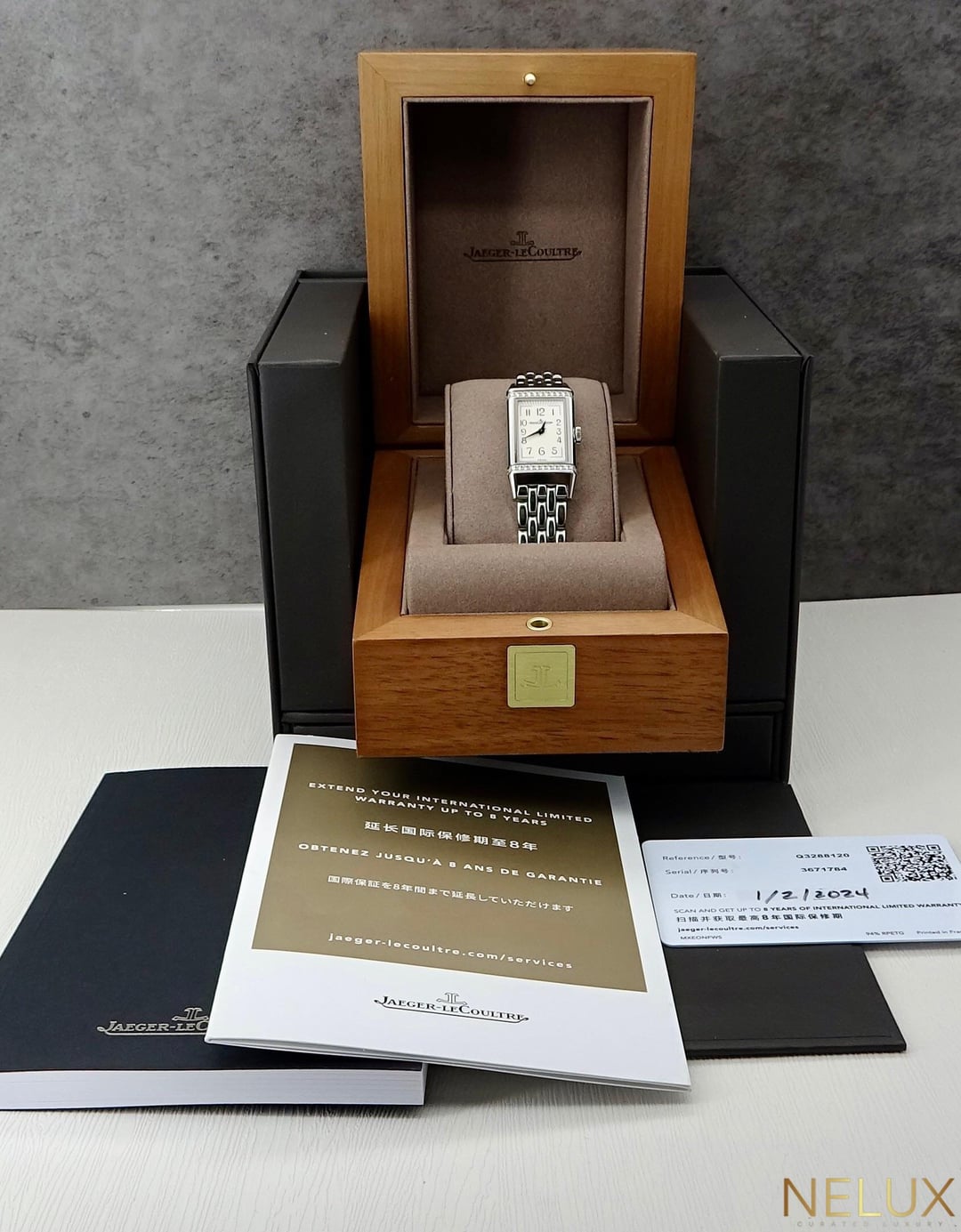 [timestamp](https://imgur.com/a/YOPjbWf) The 2024 Jaeger-LeCoultre Reverso One (ref. 3288120) brings the elegance of the Art Deco era into a modern ladies’ timepiece. Its elongated rectangular case, sunburst guilloché dial, blued hands, and double rows of diamonds on the top and bottom of the case give it a refined and luxurious presence. As part of the iconic Reverso line, the watch features the classic reversible case design, allowing the wearer to flip the watch to protect the dial or reveal a solid caseback perfect for engraving. This example is paired with its factory stainless-steel bracelet and includes five additional Jaeger-LeCoultre leather straps in assorted colors, offering versatile styling options for any occasion. The watch is in 8/10 condition with light signs of wear on the case and bracelet. Crystal is clean. Comes as a complete full set with box, papers, warranty card, and all accessories shown. Model: Jaeger-LeCoultre Reverso One 3288120 Movement: Quartz JLC Calibre 657 Crystal: Sapphire Water resistance: 30m Includes: Full set (box, papers, warranty card) + factory bracelet + 5 extra JLC leather straps Condition: 8/10 (light wear on case/bracelet; clean crystal) Location: Naples, FL Price: $5,000 shipped CONUS (UPS 2-Day Insured) Payment: Venmo, Zelle, PayPal (+fee if G&S), or Wire Trades: Open to trades, no cash on my end All sales are final unless the item is not as described or pictured. Willing to FaceTime, answer questions, or provide raw pictures upon request.