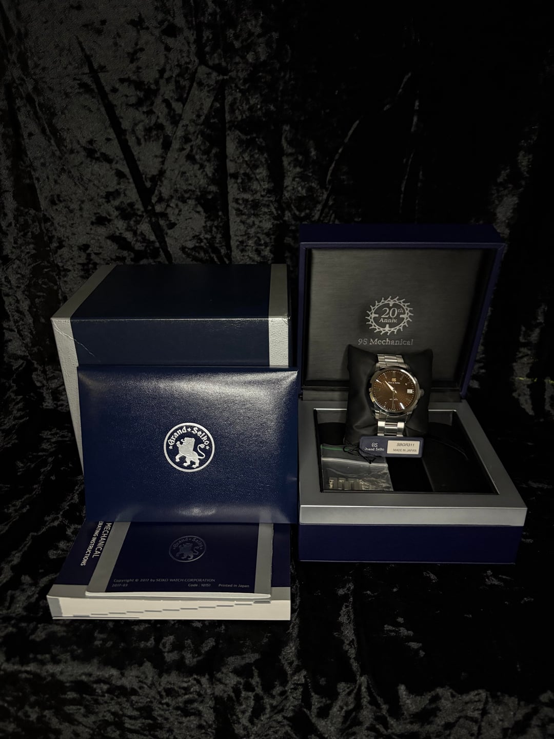 For sale: Grand Seiko Heritage Brown 20th Anniversary - FULL SET - SBGR311. Watch is in great condition and works perfectly mechanically. This 42mm watch is definitely one to have. \--------------------------------------CONDITION----------------------------------- Watch is in great condition mechanically and cosmetically. Everything works great, is keeping time well and has minimal signs of wear. Full Set. \----------------------------------SERVICE--------------------------------------- Deal with confidence! Feel free to message me to ask for references. \-------------------------------------PRICE------------------------------------------ Price: **$4,995** \----------------------------------SHIPPING------------------------------------- We believe that all of our pieces should be shipped with **fully insured overnight shipping**. That's why we ship all shipments with FedEx overnight with signature required. \-----------------------------------DESCRIPTION--------------------------------- The Grand Seiko Heritage Brown 20th Anniversary watch is a luxurious timepiece with a silver stainless steel case and bracelet, featuring a tri-fold clasp closure. This elegant watch boasts a brown dial with baton indexes and a date indicator, protected by a screwback caseback. With 35 jewels and a mechanical automatic movement, this watch offers both style and functionality. It is water-resistant up to 100 meters and comes with original box/packaging, making it a valuable addition to any watch collection.