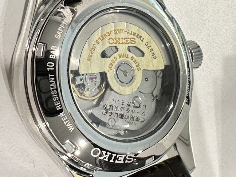 Cette version est animée par les calibres haute performance de la série 6R de Seiko. Le premier est le calibre 6R27, avec un indicateur de réserve de marche à neuf heures et un affichage de la date à six heures.