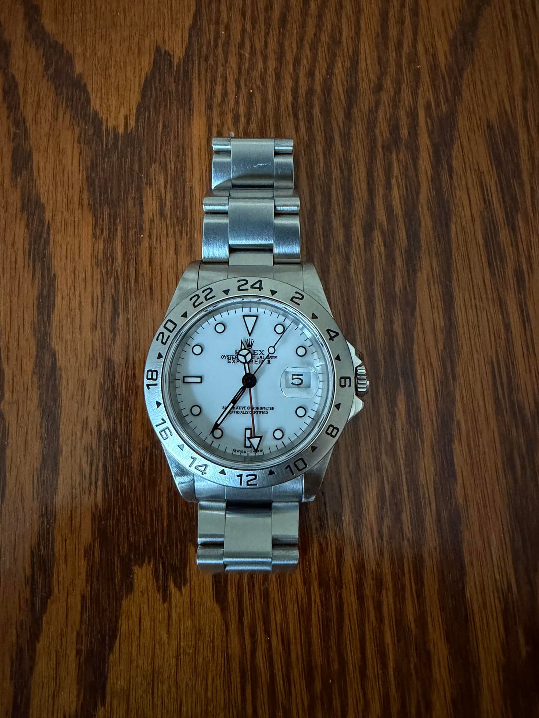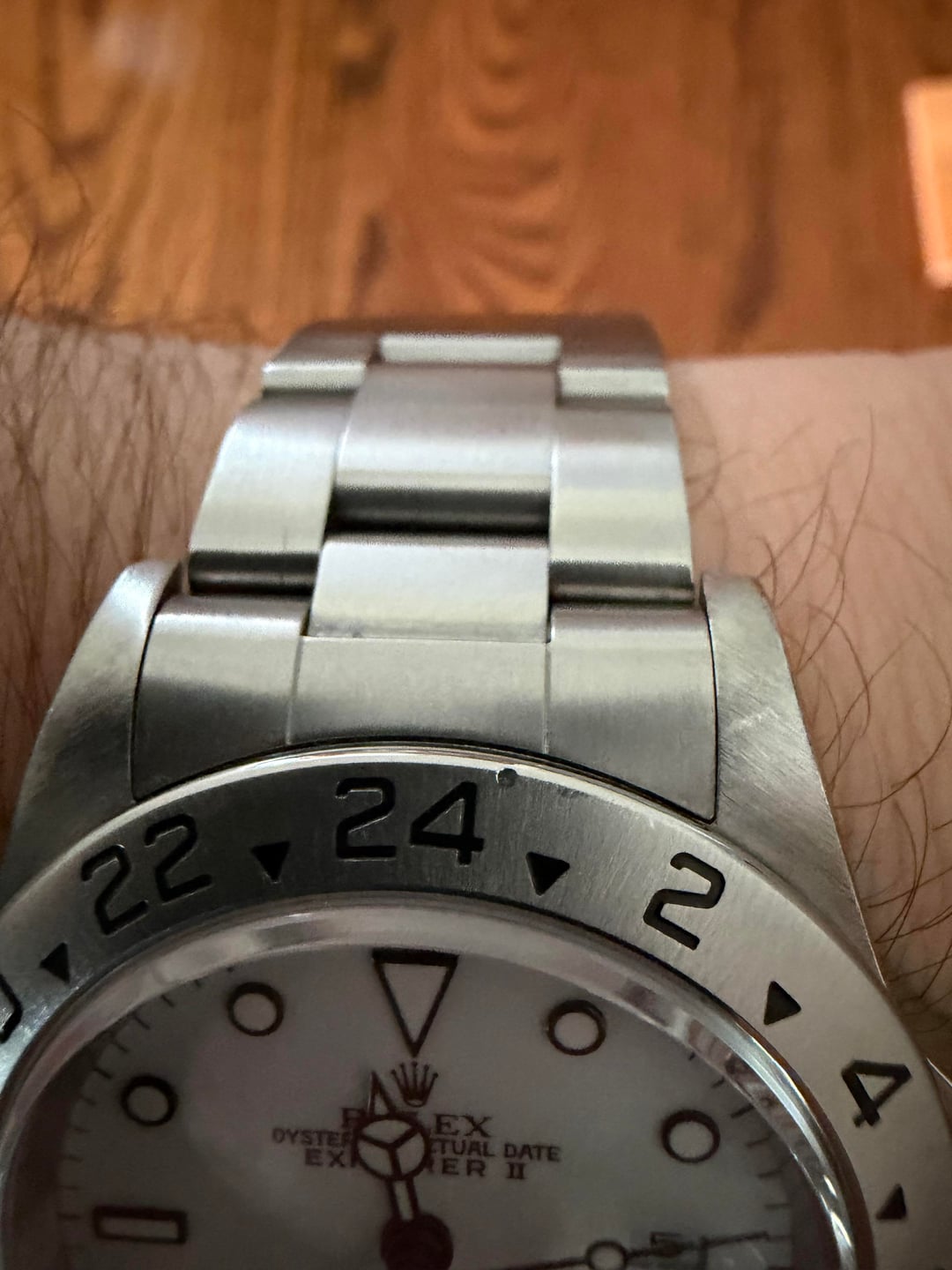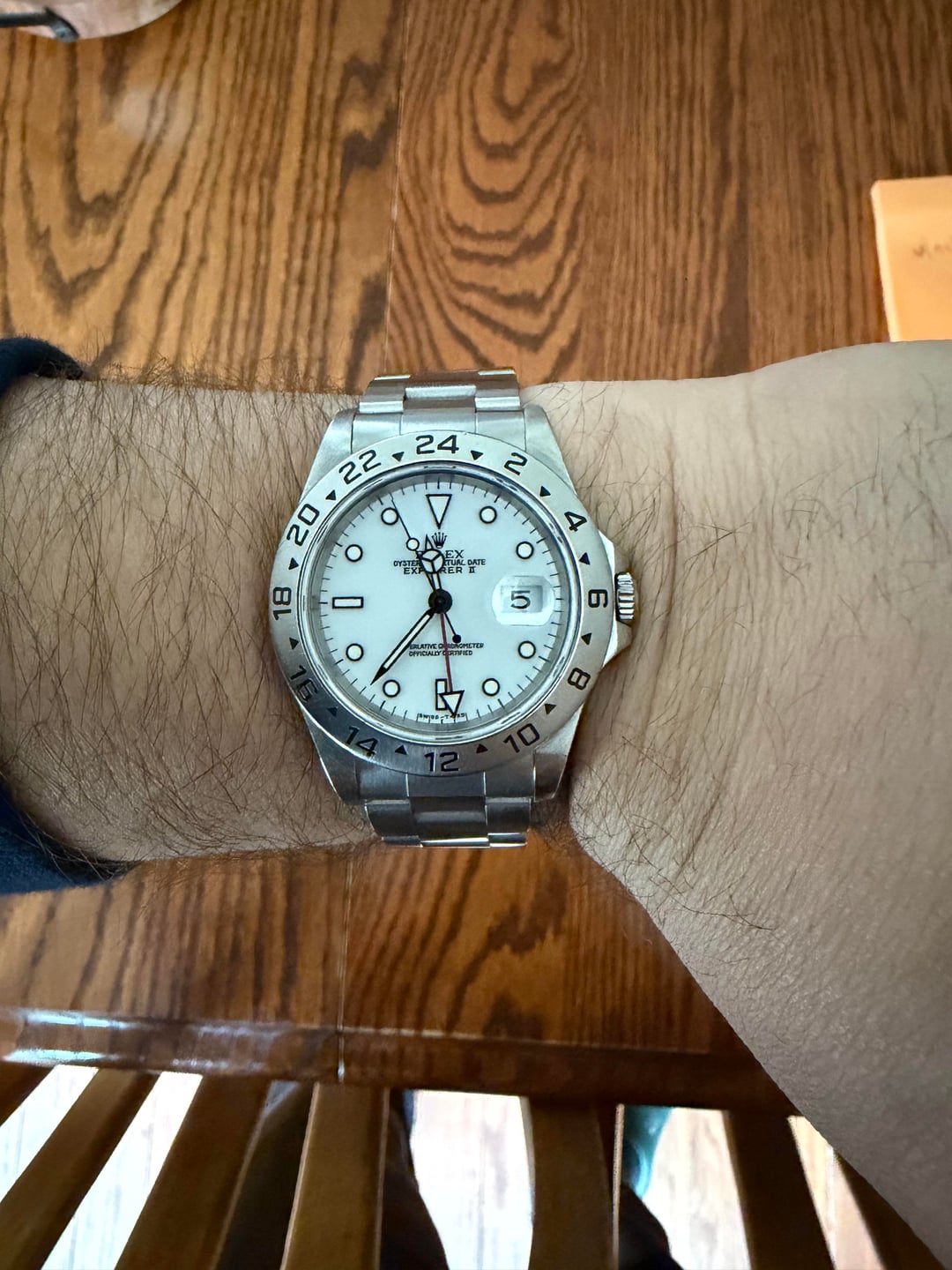 Hey Watch Ex fam! Today we have a beautiful U-serial Polar Explorer II 16570 for sale. The watch is in used but great overall condition with minor wear marks on the bracelet and a tiny mark by the 24 hour marker. This comes as watch only and the serial dates it around 1997. Asking for $7500 (somewhat negotiable) with insured shipping included anywhere in CONUS. I accept Zelle, PayPal F&F, and crypto for payment. PM me!