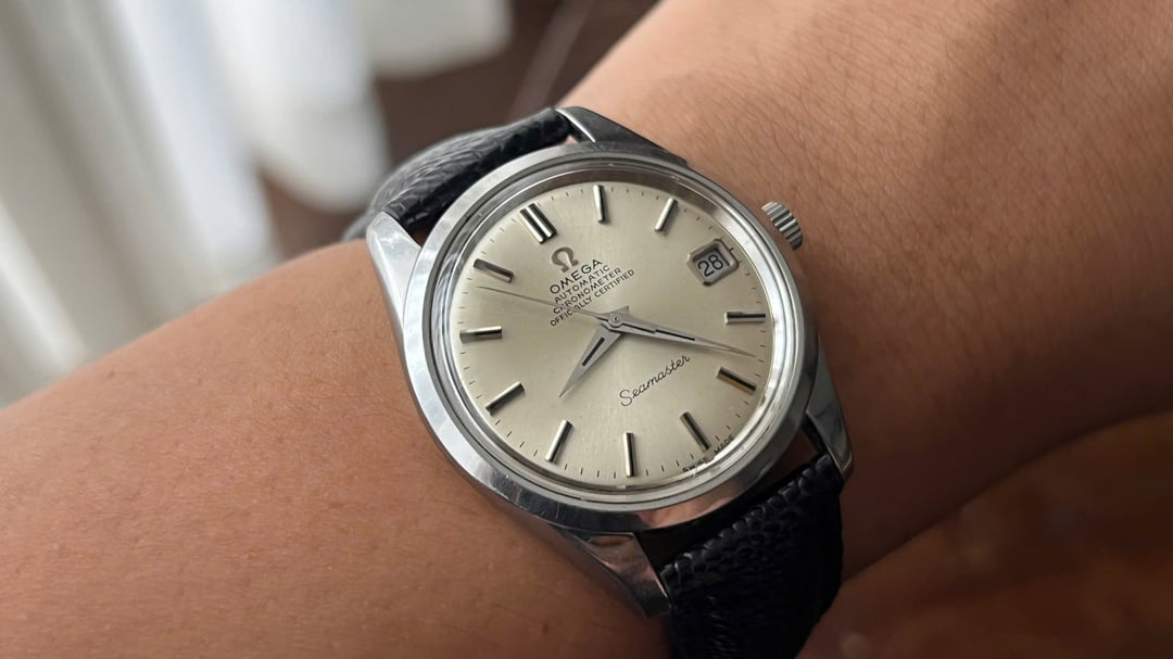Hi everyone, Up for sale is a clean and honest 1969 Omega Seamaster Chronometer ref. 168.024, powered by the chronometer-rated Cal. 564 and freshly serviced. This reference is a great vintage daily: classic mid-century Omega proportions, a clean silver dial, and the added appeal of a chronometer movement. This one is offered on an aftermarket strap/buckle, but the watch itself retains key original touches, including the correct original crown and the original signed Omega plexiglas (Ω visible). CONDITION Dial: \- Silver dial with a subtle sunburst finish. \- Printing is clean and well-aligned: Omega logo/text, “Automatic Chronometer Officially Certified,” and the Seamaster script all look sharp. \- Under macro/close inspection, you can see light speckling/spotting consistent with age (visible in the close-ups), but it presents very clean on the wrist. \- Applied baton hour markers are tidy and sit evenly. Hands: \- Correct dauphine hands. \- Honest vintage wear consistent with age; no obvious corrosion or damage noted in the photos. Case: \- 35mm unpolished stainless steel case with honest wear from use: hairlines and small marks consistent with careful vintage ownership. \- Lugs retain good definition and the case has a strong overall profile on wrist. \- No major dents noted in the photos. \- Seahorse caseback medallion remains well-defined. Crystal: \- Original Omega signed plexiglas (Ω visible). \- Light surface marks/hairlines consistent with age, but overall clear with good dial visibility. Crown: \- Original Omega crown (as noted), appears correct for the reference and sits well against the case. Movement: \- Omega Cal. 564 (chronometer-rated automatic). \- Freshly serviced and running well (service details/timekeeping available on request). Strap: \- Aftermarket black strap and aftermarket buckle (included). \- Easy to swap to any strap you like. PRICE: $1150 USD (ALL-IN) \- DHL shipping included. \- No hidden fees on the buyer’s side. PAYMENT & TERMS Payment via Wise, bank transfer, crypto, or PayPal. All sales are final unless clearly misrepresented. Happy to share more photos, videos, or answer any questions. Feedback on Reddit and OmegaForums available. Vintage watch note: Vintage watches are not waterproof. Even if gaskets have been replaced during service, these watches were not built for modern water resistance. Please keep it away from water, humidity, and steam.