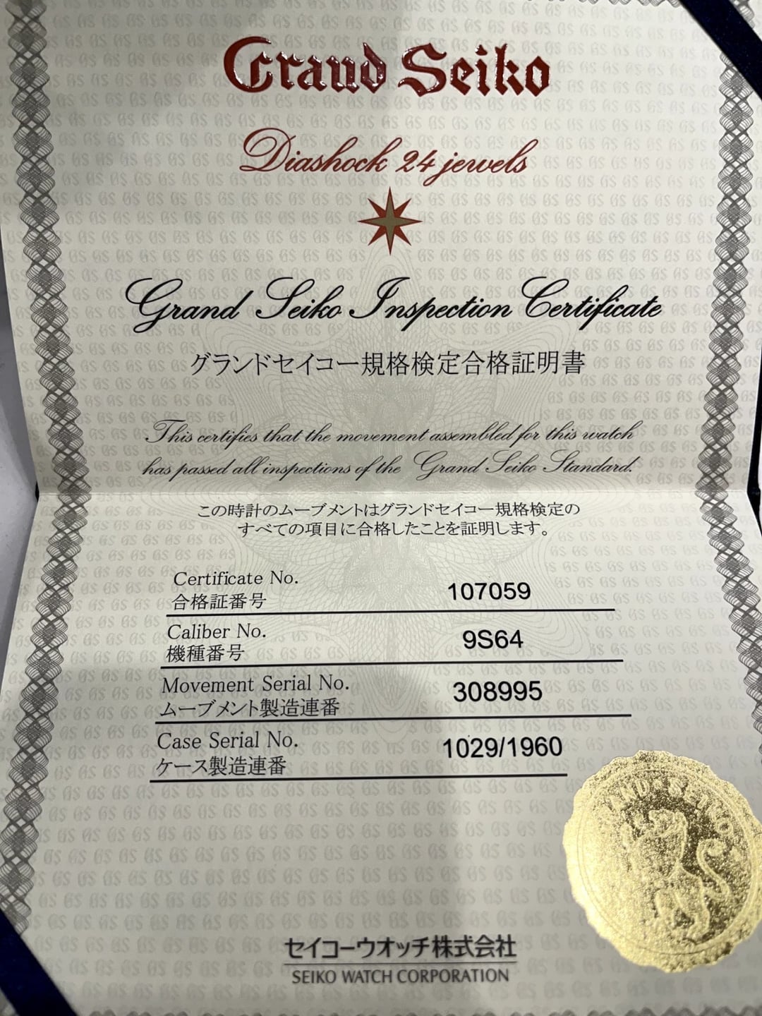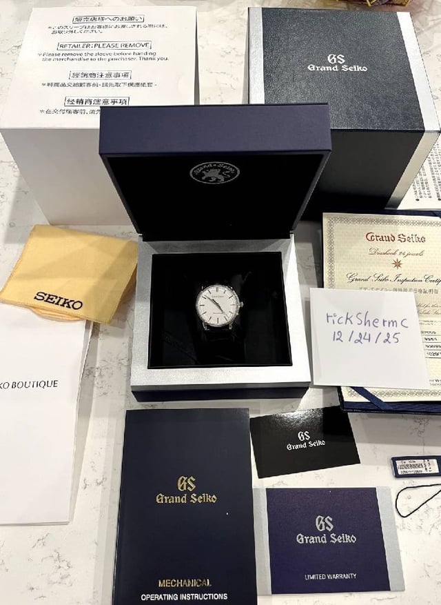 This watch is numbered 1029 of 1960 produced, and it is in mint condition. The original black crocodile strap shows just minimal signs of aging (as you’d expect after eight years), but the case, crystal, and dial are essentially flawless. When I say “full kit,” I mean beyond full kit, everything that came from the boutique is here, including: Original Grand Seiko presentation box Outer sleeve and all inserts Original warranty card Extended warranty card from Grand Seiko Boutique Miami Original purchase receipt Certificate of authenticity User manual and limited warranty booklet Grand Seiko microfiber cloth Original hang tags Even the original protective plastics the watch was shipped with all neatly stored in the box Nothing is missing whatsoever from this set. It’s as complete as it gets. Price: $4,200, Shipping included