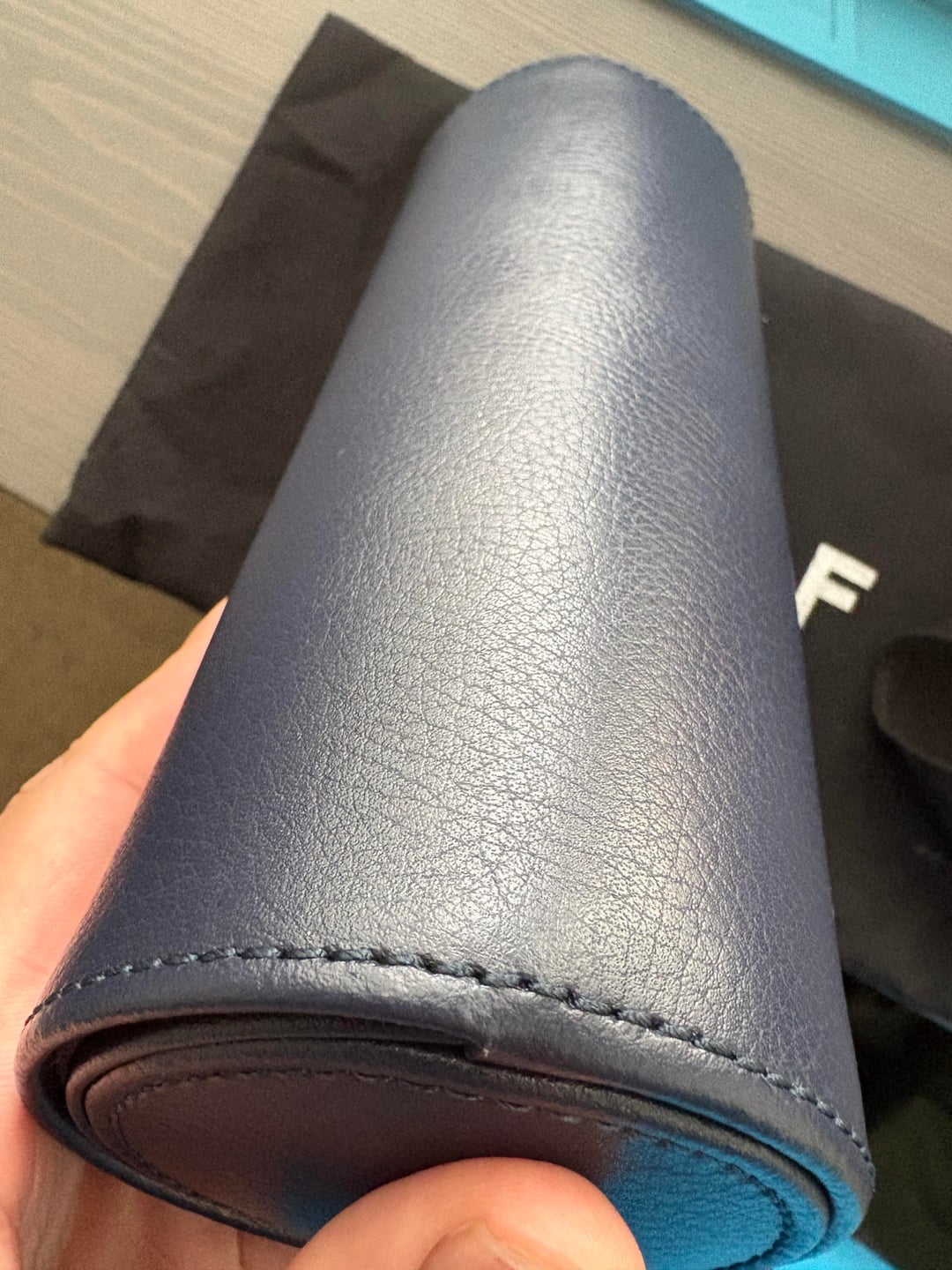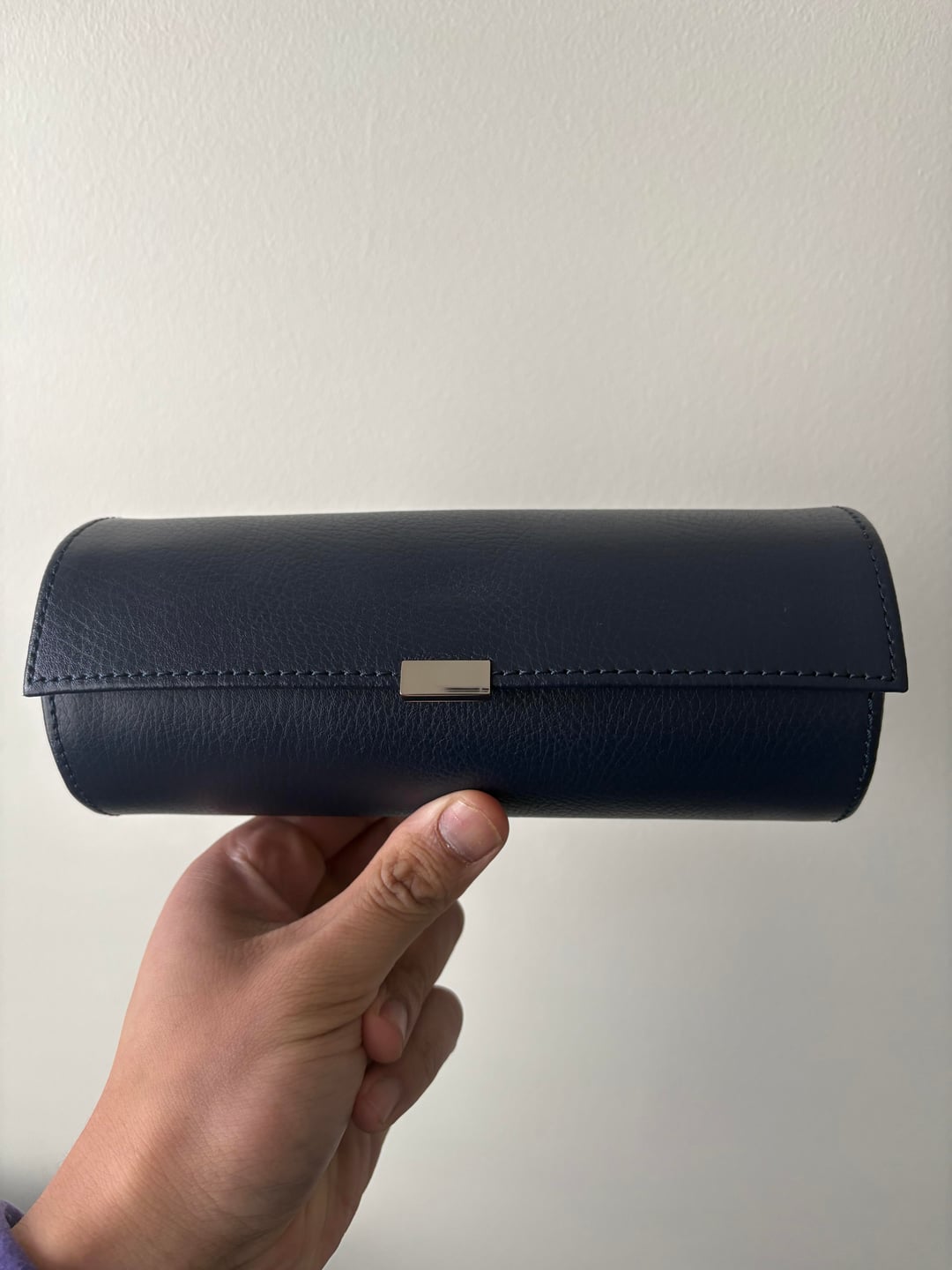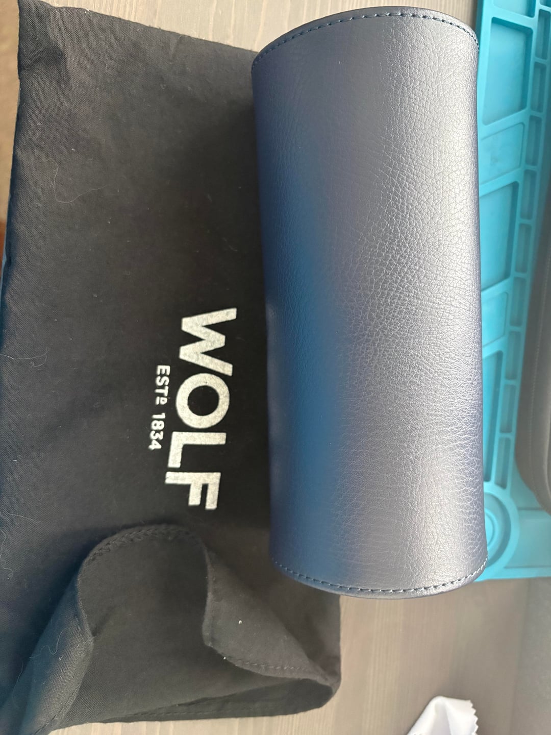 Asking $100 shipped CONUS. Venmo or PP FF. Sitting in a drawer and not getting used. Used once. Leather and interior well in tact. MSRP on these is over $200. Link: https://www.borsheims.com/wolf-howard-triple-watch-roll-navy?srsltid=AfmBOoorQt3kyGuX9_JmYWrlmsHNCoMR51p57tMJB4Q7bRN9vfy1Jeco SPECS * WOLF * Pebble leather exterior * Ultrasuede interior * Chrome-finished hardware * Snap-button closure * Holds 3 watches * Dimensions: 8 x 3.25 x 3.25 in (20.3 x 8.3 x 8.3 cm)