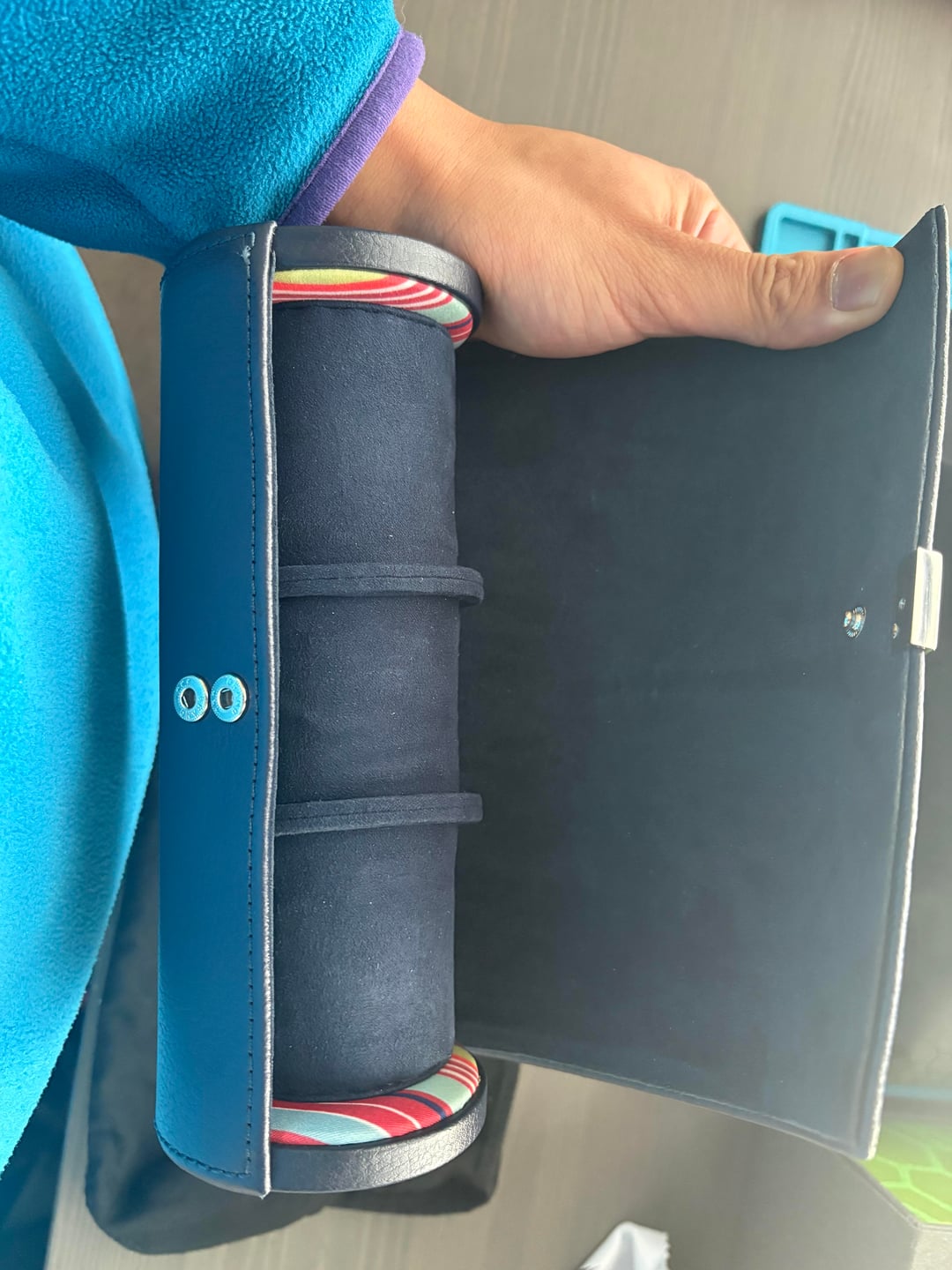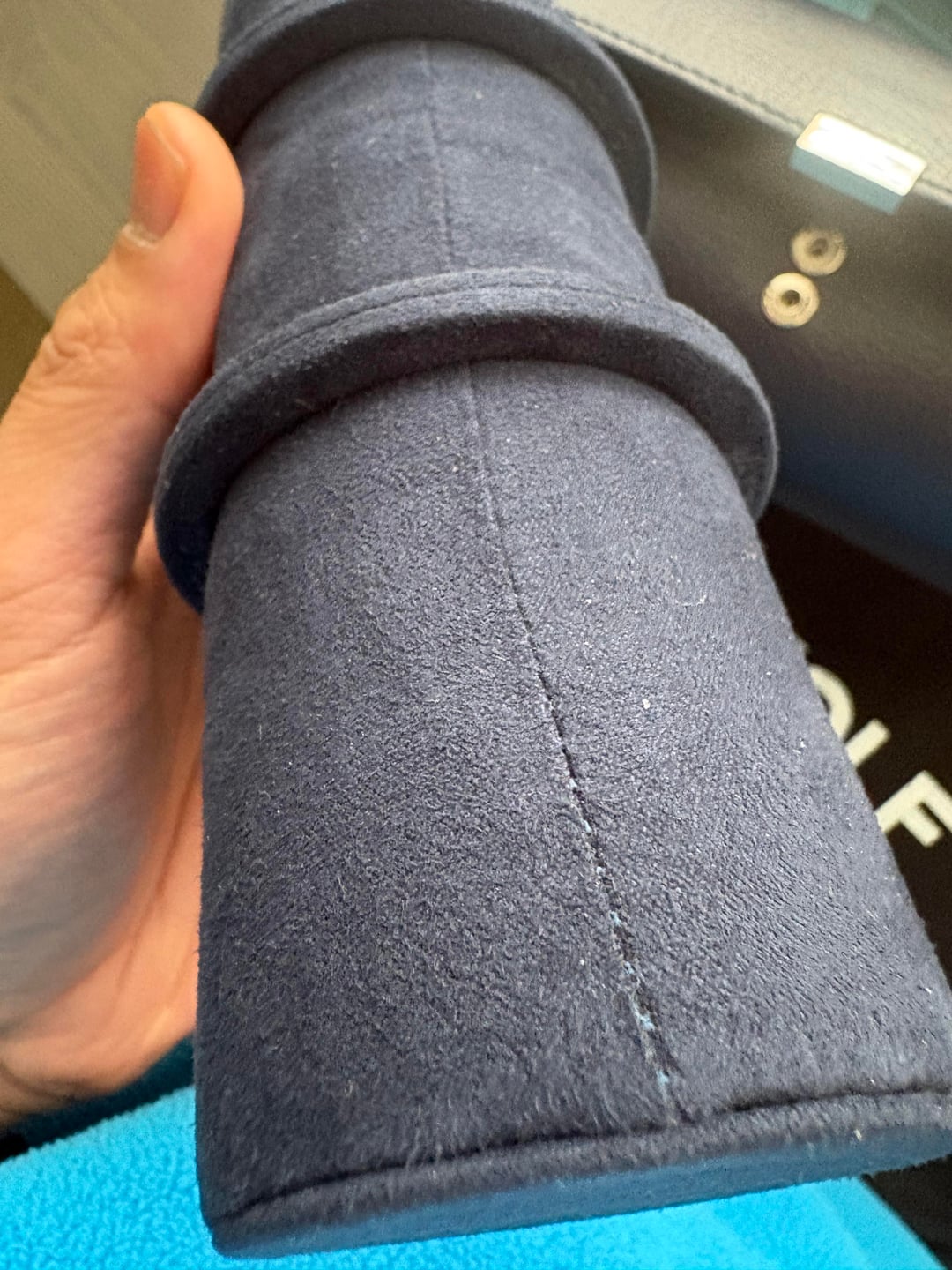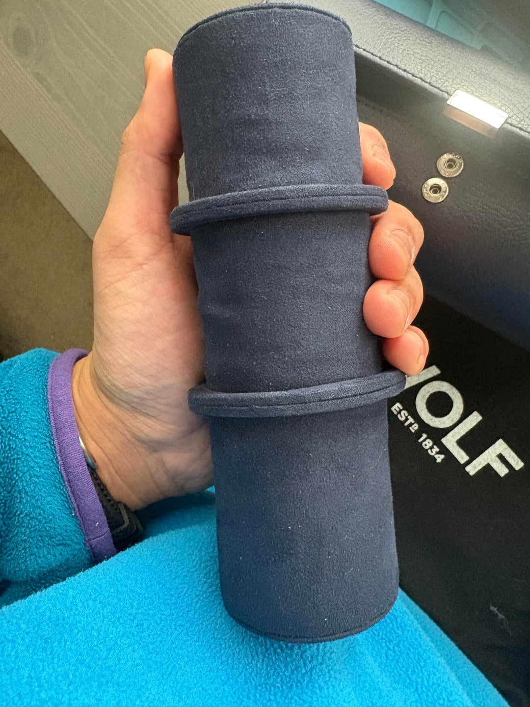 Asking $100 shipped CONUS. Venmo or PP FF. Sitting in a drawer and not getting used. Used once. Leather and interior well in tact. MSRP on these is over $200. Link: https://www.borsheims.com/wolf-howard-triple-watch-roll-navy?srsltid=AfmBOoorQt3kyGuX9_JmYWrlmsHNCoMR51p57tMJB4Q7bRN9vfy1Jeco SPECS * WOLF * Pebble leather exterior * Ultrasuede interior * Chrome-finished hardware * Snap-button closure * Holds 3 watches * Dimensions: 8 x 3.25 x 3.25 in (20.3 x 8.3 x 8.3 cm)