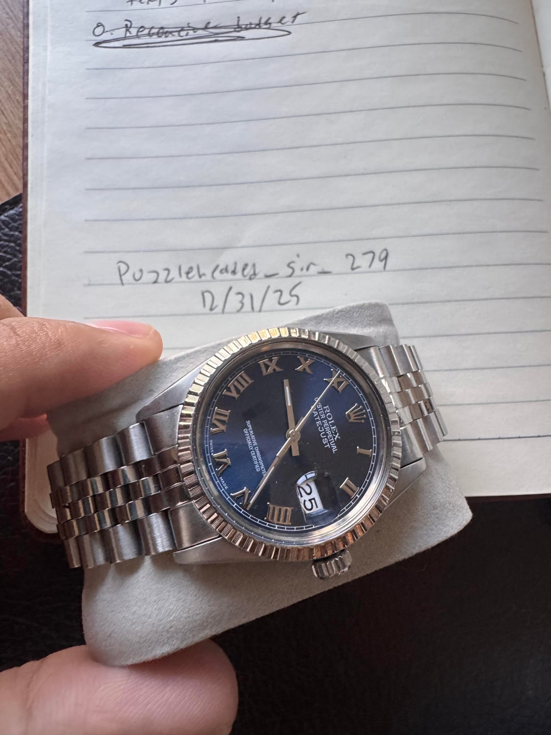 Letting go of a beautiful 1986 Rolex Datejust 16030 featuring a striking blue Roman numeral dial paired with the classic engine-turned bezel. This reference delivers that perfect vintage Rolex feel — elegant, reliable, and timeless on the wrist. This example was recently serviced and received a new seal, so it’s running beautifully and ready for its next owner. A fantastic pickup for someone wanting a clean, honest, and well-cared-for vintage Datejust. ⸻ 💰 Price $5,299 + shipping (Open to respectful conversation) ⸻ 📝 Condition • Dial: Beautiful blue Roman dial with excellent presentation • Crystal: Clean and clear • Bezel: Engine-turned bezel in great shape with sharp presence • Case: Minor handling marks consistent with its age • Bracelet: Original bracelet in great shape with minimal slack (rare for vintage) • Movement: Recently serviced — running strong • Set: Watch only ⸻ 📍 Location & Shipping • Located in Charlotte, NC • Fully insured U.S. shipping available • Local meetups welcome ⸻ 💳 Payment Accepted • Bank wire • Zelle • Cash (local) • Venmo (case-by-case) ⸻ 🧾 About Me (Casetowrist) I’ve been selling and trading watches for 10+ years, prioritizing transparency, smooth deals, and trust. Happy to authenticate at a local watchmaker if requested (buyer covers fee). Instagram: @casetowrist Website: Casetowrist.com Open to FaceTime to show the watch!