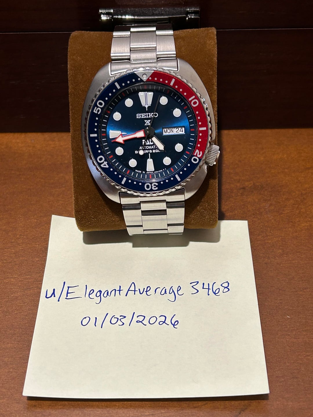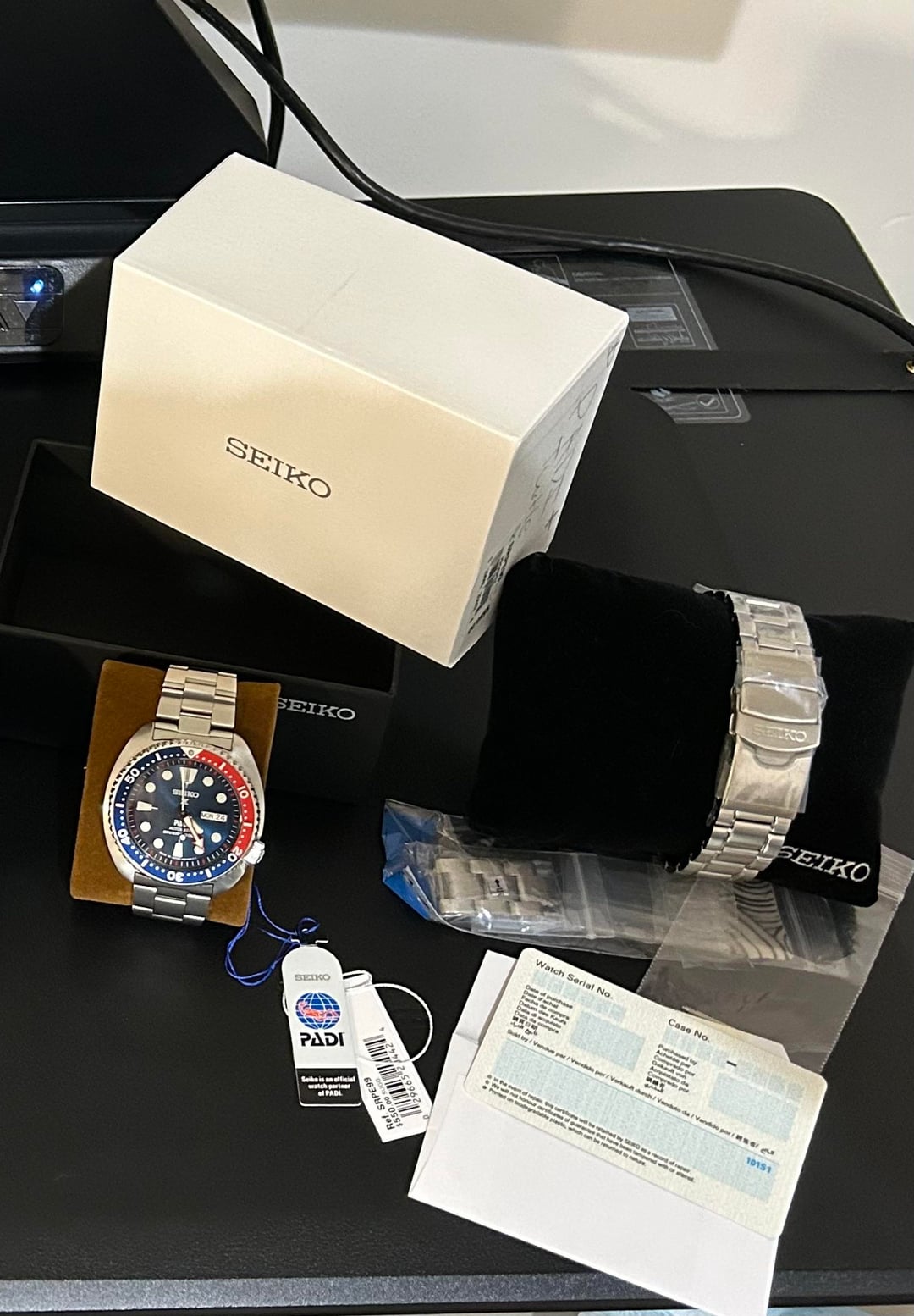 Hi Watchex - Below price includes ground shipping. No trades please only looking to sell. I will take PayPal G&S with the buyer covering the fee or Zelle. Will also entertain PayPal F&F or Venmo with a positive transaction history. Seiko Turtle Pepsi Padi. Ref# SRPE99. Comes with full kit with unstamped warranty card. Worn lightly, some small micro/hairlines on the polished sides of the case, if anything to note. Comes with original Seiko still in factory plastic. Pictured on uncle straps senator bracelet. $320 shipped without uncle bracelet, Seiko full kit. $60 uncle senator bracelet, shipped. If purchased without watch the price for the bracelet is $50. I’d be happy to send additional pictures, video, or FaceTime with the watches. Let me know if you have any questions.