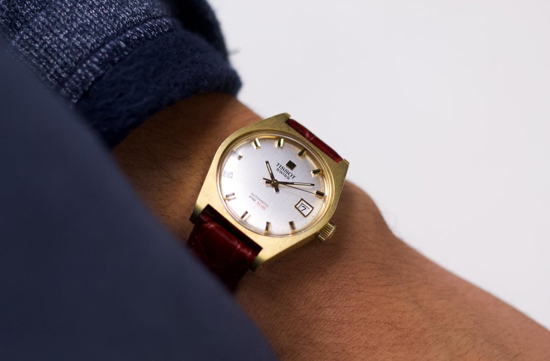 Timestamp: [https://imgur.com/a/Gb0Eciy](https://imgur.com/a/Gb0Eciy) *This 1970s Tissot features an aged straight grain silver dial that is paired with chunky mirror polished indices and square hands that play with the light.* *Powering this watch is the Tissot 786-2 17-jewel automatic movement which also offers handwinding and a date with semi quick-set.* *To change the day, pull the crown out and advance the time to 2 AM, then back to 7 PM. Do this until you’ve reached the desired date.* *Housing this watch is a gold toned steel case that is flashy enough for a weekend at the beach yet sleek enough to fit in the office.* *Condition: In phenomenal condition with very little wear.* *Movement Condition: This watch was serviced in November of 2025 and is currently running at within ± 20 seconds per day, amplitude of 270-300 and a beat error of 0.2MS.* *Size: 35mm diameter (37mm with crown), 11mm height, 18mm lug width.* *Price: $369, no trades at this moment.* *Shipping: Free shipping within the US. International shipping available, price may vary* *The watch ships from SLC, Utah USA.* *Payment Method: Paypal, Venmo or Zelle. 3% extra if using goods & services to cover the fee charge.* *Feel free to reach out if you have any questions!*