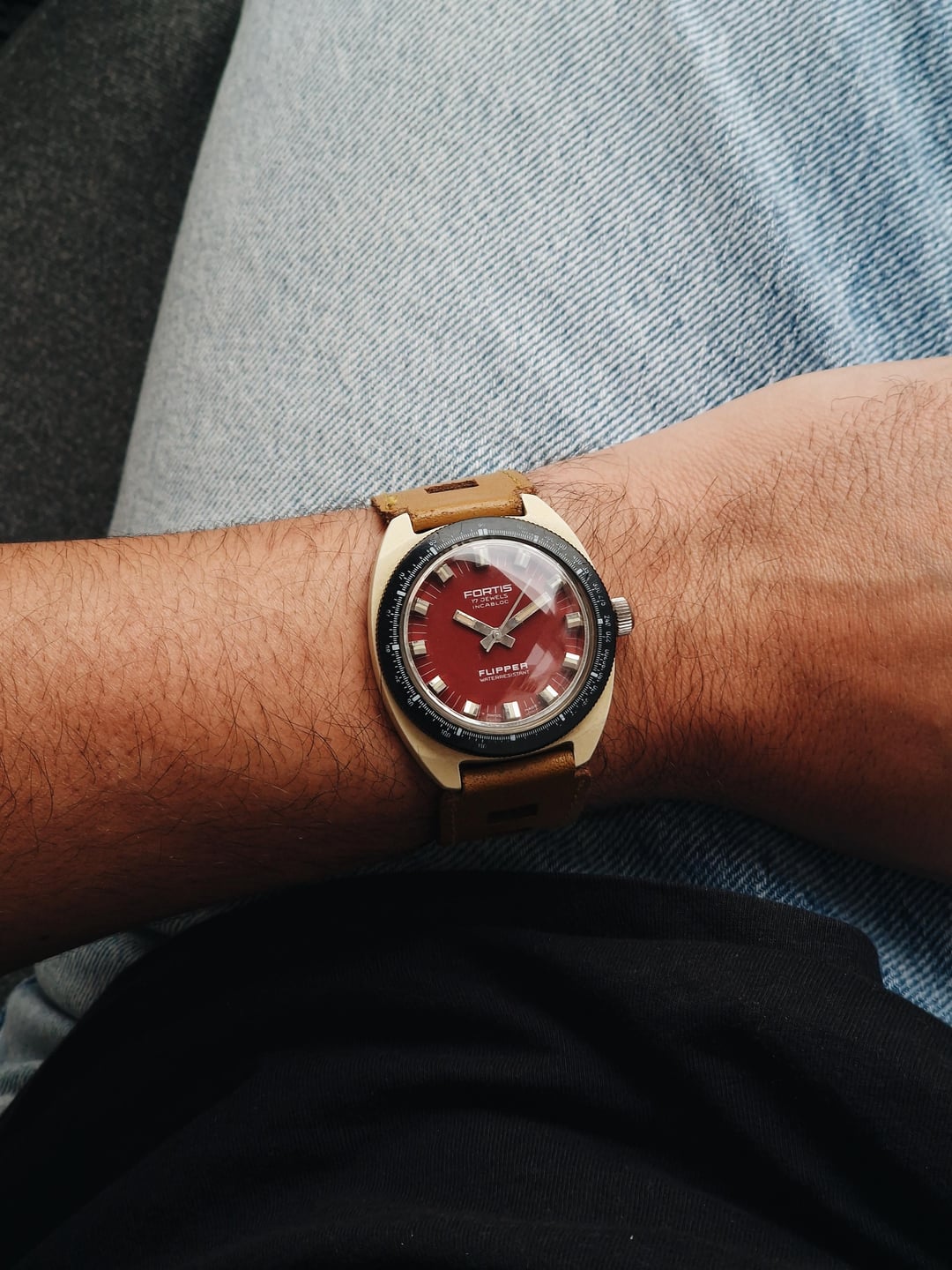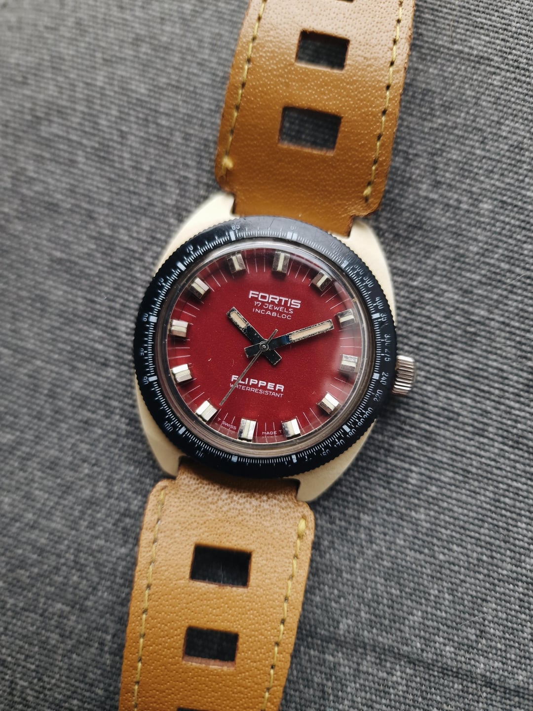 The Fortis Flipper is pure late 60s attitude – a red dial stuffed into a chunky plastic case that doesn’t pretend to be anything but fun. It’s lightweight, loud, and retro, but still packing a punch as these were rated to 600 feet. Apparently, it was made for the 1968 Olympics. Inside is a simple manual wind movement. Nothing complicated or delicate, just a playful vintage beater with a ton of charm, the kind of oddball that’s worth collecting. It also seems to come with the original leather strap, or at least a very good modern version. **Condition:** Good condition for its age. The case and bezel have some wear, but nothing major. The acrylic crystal looks very good. Please see the pictures for full condition and clarity. **Case Size:** 37 x 42.8mm plastic case with a thickness of 12.9mm and a lug width of 18mm. **Movement:** Swiss 17-jewel manual wind movement. Service history is unknown, but everything is working as it should. **Other Information:** * It seems to have the original leather strap, or at least a very good modern version. **Price:** Asking $290. Please add $20 for worldwide shipping. Payment methods include Wise, ACH transfer, Revolut, Bitcoin (On-Chain or Lightning), or PayPal G&S for buyers with solid references. Add +7.5% for currency conversion fees on the latter. Portugal has suspended all local post shipments to the US, but I can still ship with UPS ($100). Established seller with over 220 transactions – buy with confidence! Make sure to follow me on Instagram (@daily.worn) to check out the newest additions. [Pictures](https://imgur.com/a/ekUOsBs) [Timestamp](https://imgur.com/a/lT5t5vT)
