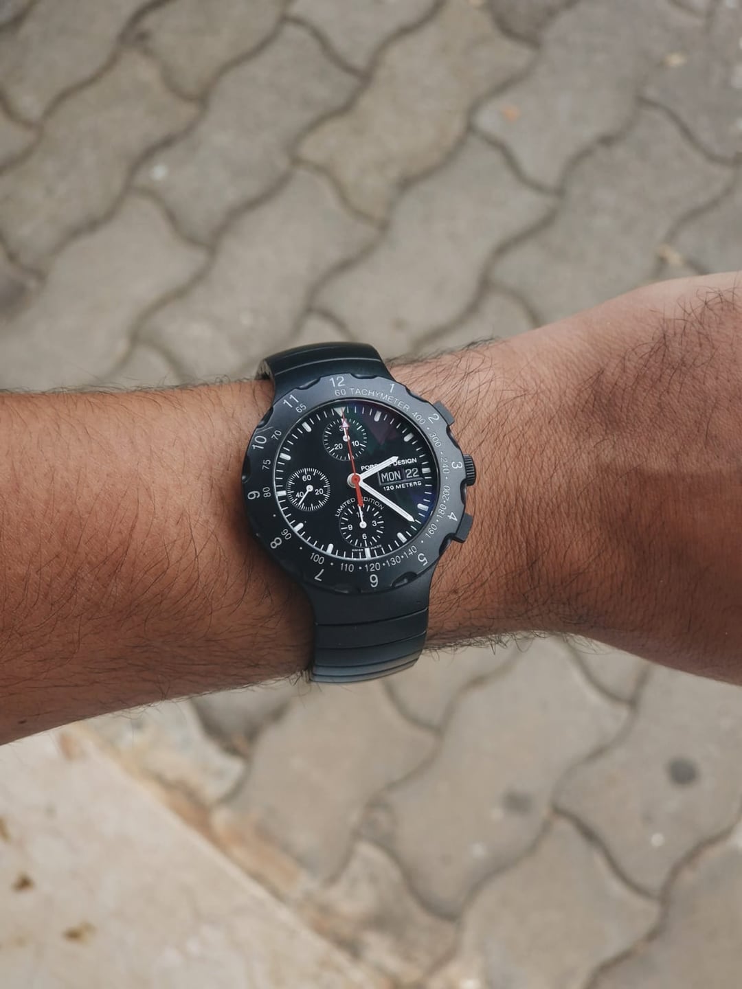 Porsche Design was founded in 1972 by Ferdinand Alexander Porsche, the gentleman responsible for designing the Porsche 911. In 1973, the company launched its first wristwatch, the first to feature an all-black PVD case and bracelet. This Titanium Chronograph from the early 2000s shares many similarities with that first watch, including the same dial layout with the chronograph and day-date. However, underneath the PVD coating, the case and bracelet are made from titanium. The decorated case back features “Manufactured by Eterna”, a watchmaker responsible for producing Porsche Design watches since 1995. There are also details of this limited edition (1,999 pieces) and the signature of F.A. Porsche. The watch is powered by a Swiss Valjoux 7750 automatic movement. Despite having no known service history, it’s running well. The bracelet has some markings, as seen in the pictures, and the antireflective coating has minor scratches. **Condition:** Good. The case and bracelet are in good condition, but with some scratches on the bracelet as crystal. The sapphire crystal has minor wear on the antireflective coating. Please see the pictures for full condition and clarity. **Case Size:** 40.5mm x 49mm titanium case with a thickness of 15mm. Pictured in a 6.75-inch (17.1 cm) wrist. Wears incredibly well for its size and thickness. **Movement**: Valjoux 7750, automatic with chronograph function, day and date. Service history is unknown, but all functions work perfectly. **Other Information:** * Watch only, no box or papers. * Will fit a wrist of up around 7 inches (17.7 cm). **Price:** Asking $1,550. Please add $120 for worldwide shipping. Payment methods include Wise, ACH transfer, Revolut, Bitcoin (On-Chain or Lightning), or PayPal G&S for buyers with solid references. Add +7.5% for currency conversion fees on the latter. Portugal has suspended all local post shipments to the US, but I can still ship with UPS ($120). US buyers may have to pay a 15% tariff on arrival. Established seller with over 220 transactions – buy with confidence! Make sure to follow me on Instagram (@daily.worn) to check out the newest additions. Happy to answer serious inquiries. No trades, no lowballs. [Pictures](https://imgur.com/a/1xo0ieo) [Timestamp](https://imgur.com/a/0gZT69r)