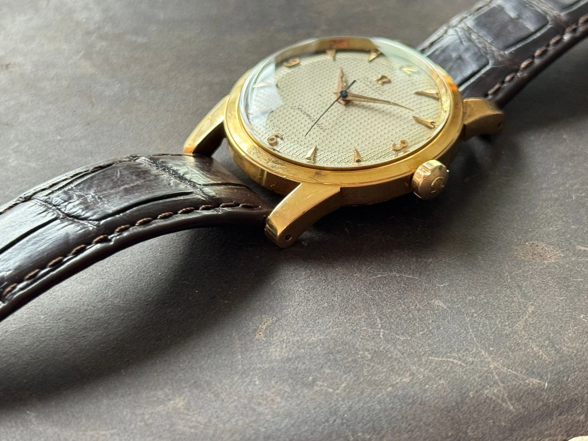 Only for trade: Omega Seamaster 2577 18k gold with hobnail dial